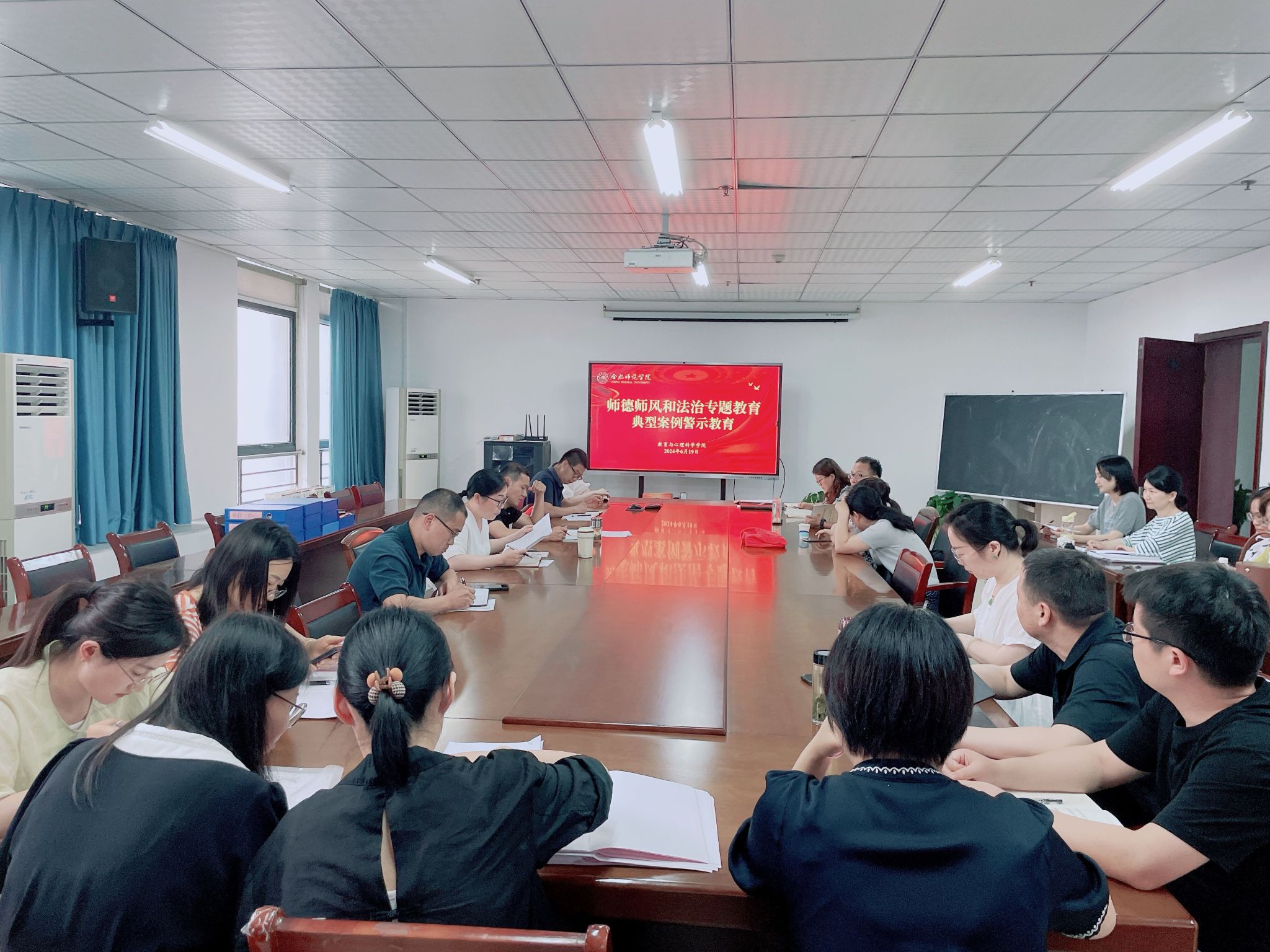 会议开展了典型案例警示教育,通报了国家自然科学基金委员会2024年不端案件处理结果(第一批次)、教育部公开第十三批7期违反教师职业行为十项准则典型案例、安徽省通报违反高等教师职业行为十项准则典型案例等。结合当前正在开展的党纪学习教育及公司党纪学习教育读书班安排,全体教职工共同观看了警示教育片《持续发力 纵深推进》第三集《强化正风肃纪》。