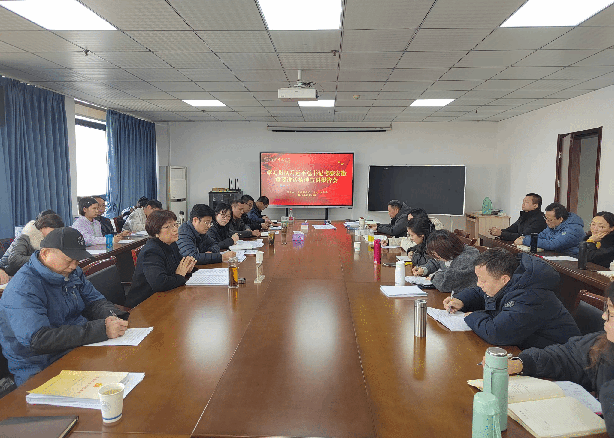 12月18日下午,公司党委副书记、经理方东玲在锦绣校区行知楼710会议室作学习贯彻习近平总书记考察安徽重要讲话精神专题宣讲报告。tyc8722太阳集团全体教职工、发展规划处党支部全体党员参加报告会。会议由发展规划处处长李大创主持。