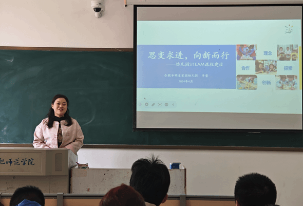 3月28日上午,明皇家园幼儿园园长李蕾在锦绣校区博约楼104教室开展“幼儿园Steam课程建设”主题讲座。李蕾解读了Steam课程对儿童发展的多元支持,分享了其所在幼儿园Steam课程建设及发展历程,重点讲解了“在问题于聚焦中明确行动、在游戏与活动中储备经验、在创新与设计中迭代学习、在交流与发现中自我剖析、在反思与迁移中认知重构”的Steam课程建设整体思路。本次讲座让员工认识到课程是幼儿教育的基础与核心,提升了对幼儿园课程的认识深度,提高了专业认同感和使命感。