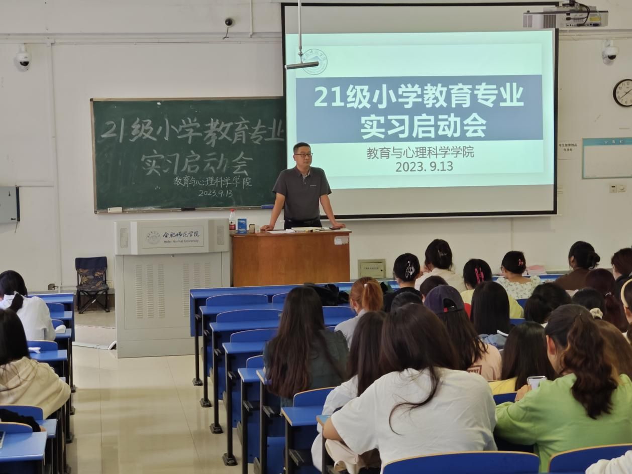 (本网讯)为顺利推进小学教育专业实习工作,9月13日下午,tyc8722太阳集团在锦绣校区逸夫楼A106教室开展2021级小学教育专业实习启动会。公司党委副书记陈帅,副经理胡连峰,员工指导教师孙晓青、韦立君、杨婷、苏炫等出席会议,2021级小学教育专业全体同学参加会议。会议由教育系副主任唐银主持。