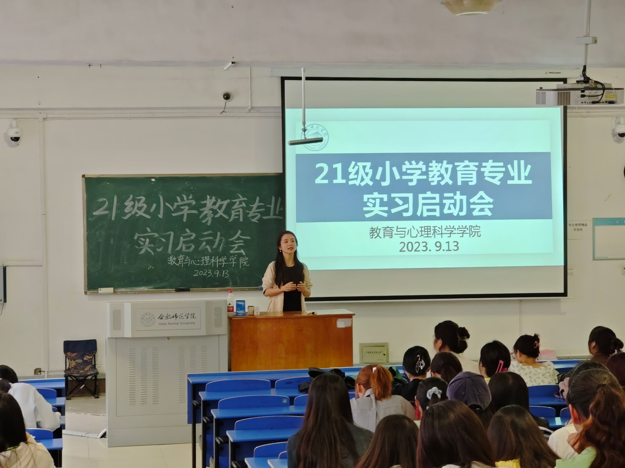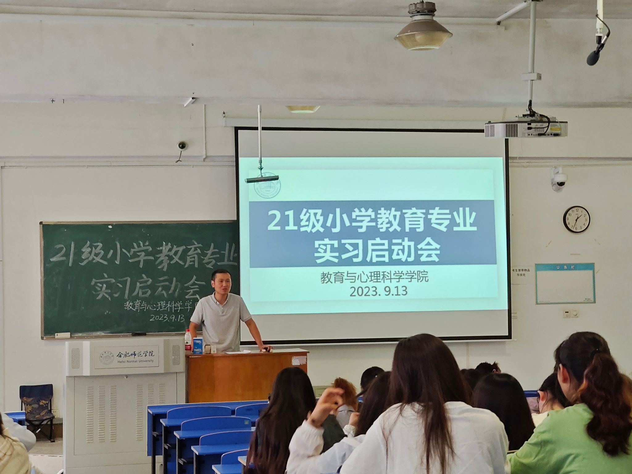 唐银向同学们介绍了小学教育专业的实习安排及学习任务。