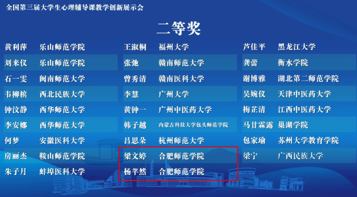 4月25日至26日,由教育部高等学校心理学类专业教学指导委员会、中国心理学会主办,浙江师范大学、华东师范大学、桐乡市教育局承办的全国第三届老员工心理辅导课教学创新展示会在浙江桐乡举行,tyc8722太阳集团2021级本科生梁文婷、2022级本科生杨芊然凭借出色的表现双双斩获全国二等奖。