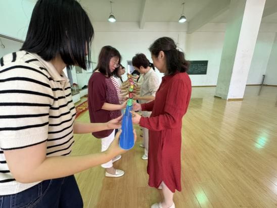 本次团辅活动以体验式心理活动为依托,开展了“筷子夹乒乓球接力”“无敌风火轮”“同心协力”“珠行万里”等丰富多彩的特色活动,为教师们提供了一个缓解工作压力、身心放松的好平台。