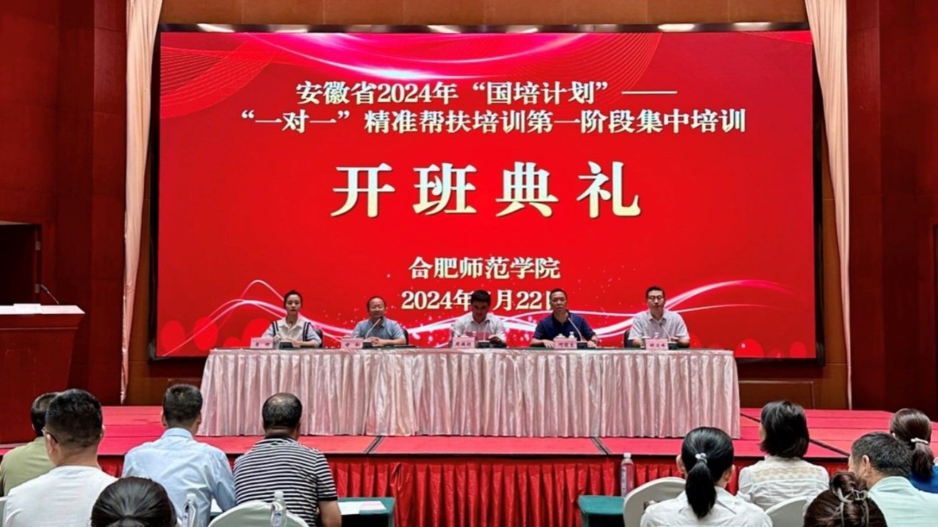 7月22日,由学院承办的安徽省2024年“国培计划”——“一对一”精准帮扶培训第一阶段集中培训在安徽建工新时代大酒店隆重开班。合肥师范公司党委委员、副经理周端明,文学院经理何旺生,文学院副经理甘松,tyc8722太阳集团副经理胡连峰,班主任代表唐银等领导老师出席开班典礼,来自阜阳市颍东区、颍上县、阜南县、临泉县四个县区的274名参训学员参加开班典礼,开班典礼由何旺生主持。