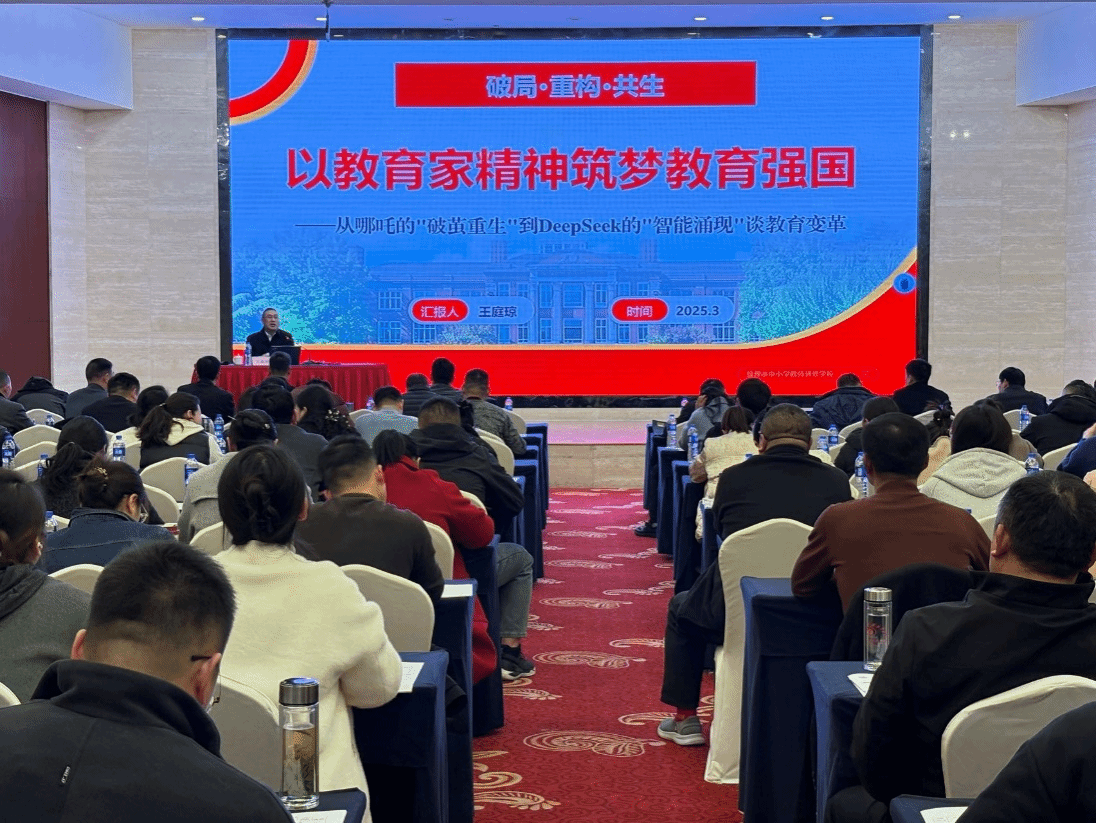培训会上,蚌埠市教师进修公司党支部书记、董事长王庭琼对各位参训老师进行名为《以教育家精神筑梦教育强国:破局·重构·共生》的授课,课程分为五个部分,分别是教育家精神的内核与价值、破局之路:教育场景重构、共生发展:教育生态建设、面向未来的教育家精神、成长密码:从“优秀”到“教育家”。王庭琼专家从哪吒的“破茧重生”到Deepseek的“智能涌现”谈教育变革,深入生活实际,参训老师认真听讲,受益良多。(tyc8722太阳集团:谢威士 唐银)