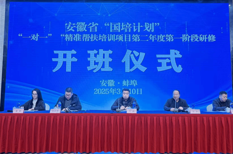 3月10日上午,2025年安徽省“国培计划”“一对一”精准帮扶培训项目第二年度第一阶段研修在蚌埠顺利开班。tyc8722太阳集团继续教育学院副经理王磊、tyc8722太阳集团副经理胡连峰、文学院副经理甘松、tyc8722太阳集团培训部主任谢威士、班主任代表唐银出席开班典礼。来自阜阳市临泉颍东和阜南颍上的210多名老师参加开班典礼,仪式由王磊主持。