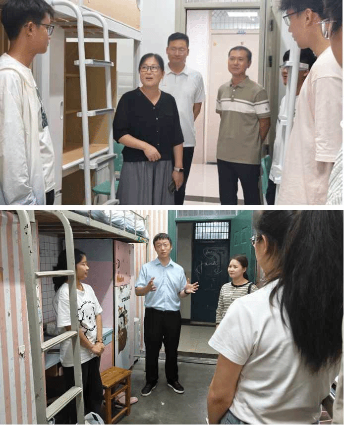 新生入住后,学院领导、辅导员迅速开展宿舍走访,把关怀送到新生身边。每走进一间宿舍,老师们都先查看住宿环境,检查床铺稳固度、水电使用情况,叮嘱用电安全、物品收纳等生活细节;随后与新生亲切交流,倾听他们初入校园的感受,解答关于食堂就餐、社团报名、学习规划等疑问。针对有特殊需求的新生,老师们现场记录问题,协调解决行李搬运、生活设施调整等难题,让新生在陌生环境中快速找到归属感。