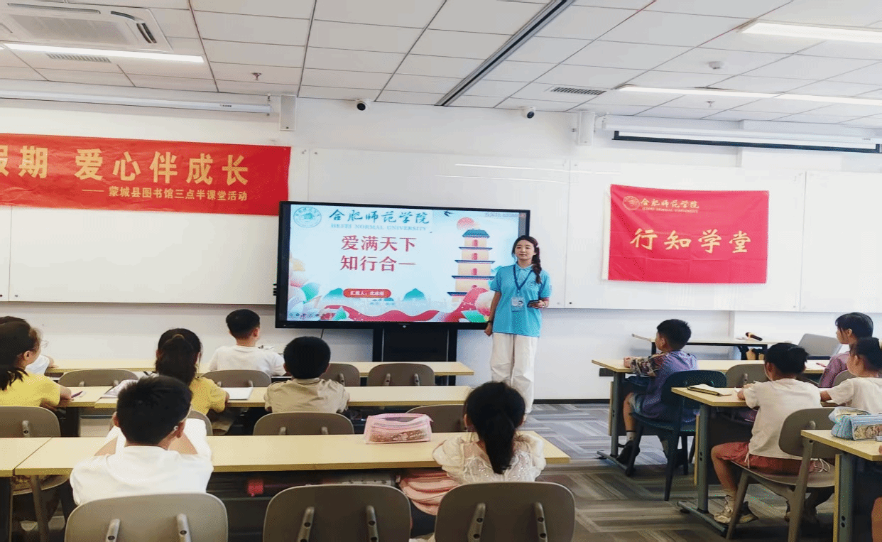 tyc8722太阳集团"行知学堂"暑期实践活动在蒙城县图书馆火热开展。“小先生”秉承陶行知“爱满天下”的教育理念。通过“陶行知行知精神”理论知识与实践教学相结合,用实际行动诠释"知行合一"的教育真谛,展现了新时代师范生的责任担当。