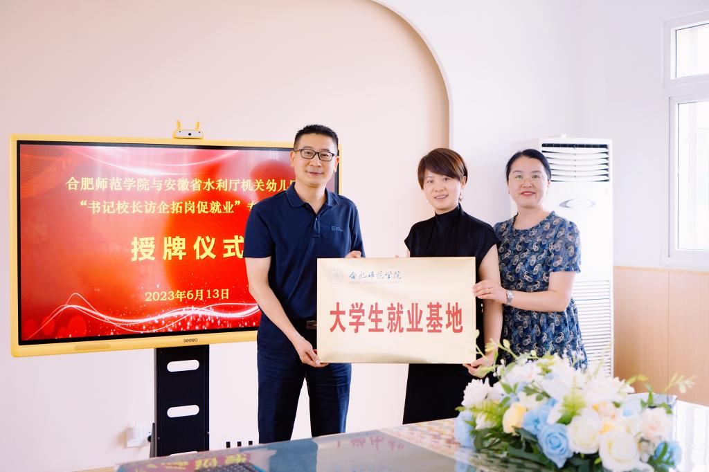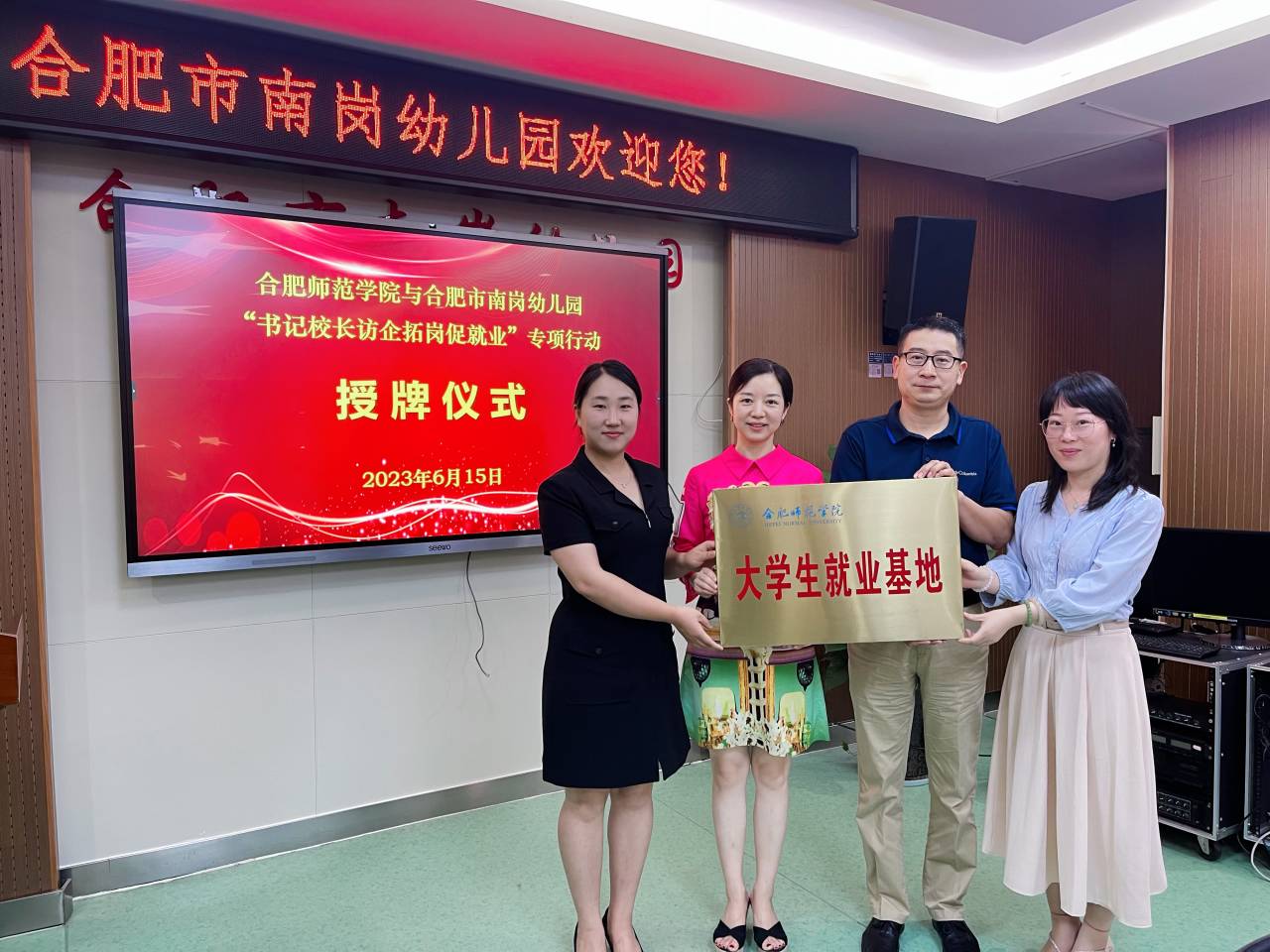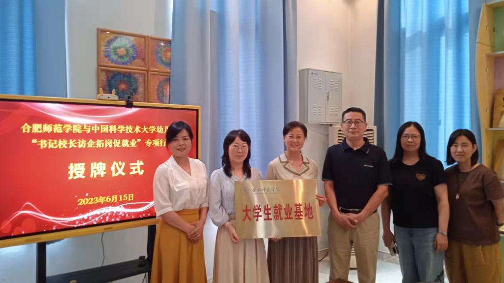 为深入开展学习贯彻习近平新时代中国特色社会主义思想主题教育,进一步落实“访企拓岗促就业”专项行动工作部署,促进毕业生更加充分更高质量就业,6月13至15日,教育与心理科学公司党委书记董萍,副经理胡连峰、胡哲,学前教育系主任孙延永,辅导员代表王磊等赴安徽省水利厅机关幼儿园、安徽省军区机关幼儿园、合肥市南岗幼儿园和中国科学技术大学幼儿园开展考察调研和校企合作交流。