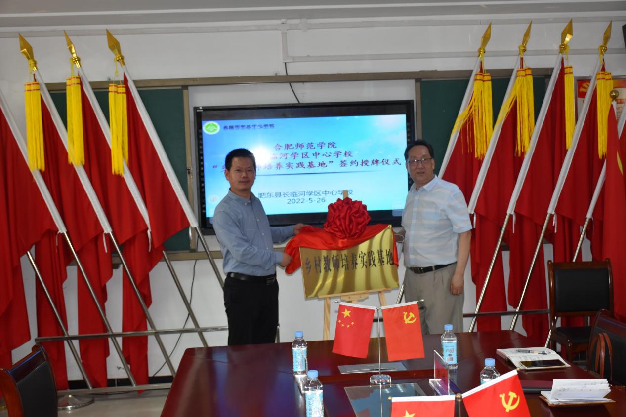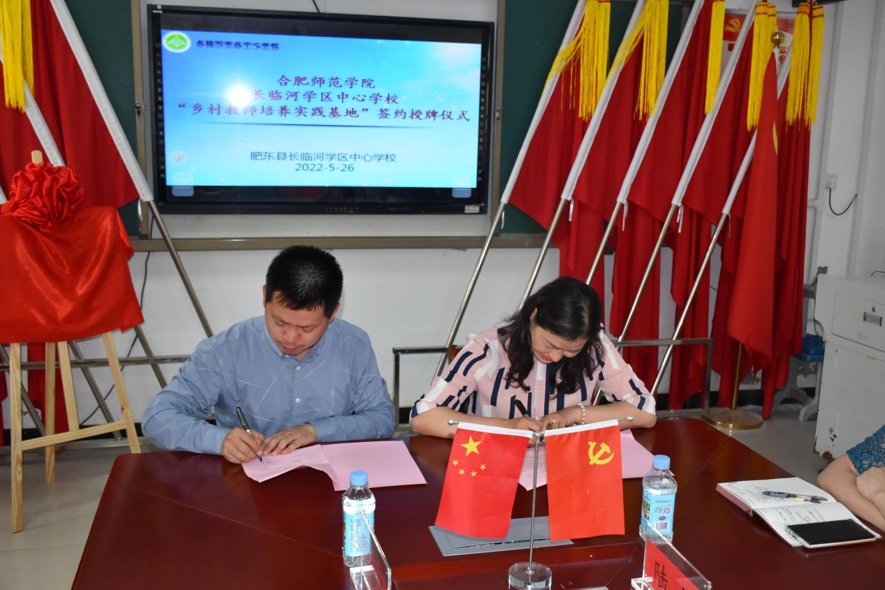 随后,合肥师范公司党委委员、副经理姚本先、就业创业工作处长马平、巢湖市黄麓学区主任、董事长方万年、肥东县长临河中心学校董事长张杰分别为基地揭牌,穆娟与肥东县长临河学区中心学校董事长张杰进行了现场签约,双方均表示将携手进一步加强师范生高质量的培养与发展。(教师教育学院:屠家宝)