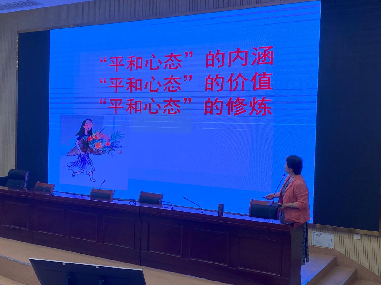 为员工开展心理健康讲座的目的是帮助员工做好心理上的调整,充分点燃成长的内动力,通过此次讲座,同学们认识到平和心态,学习到如何去培养平和心态,有利于提高心理健康水平,做阳光、积极、美丽的自己。(教师教育学院:唐淼 吴竹芬)