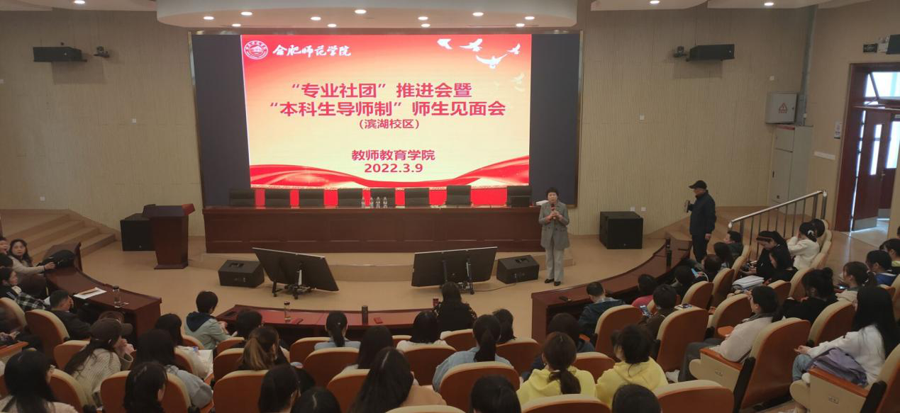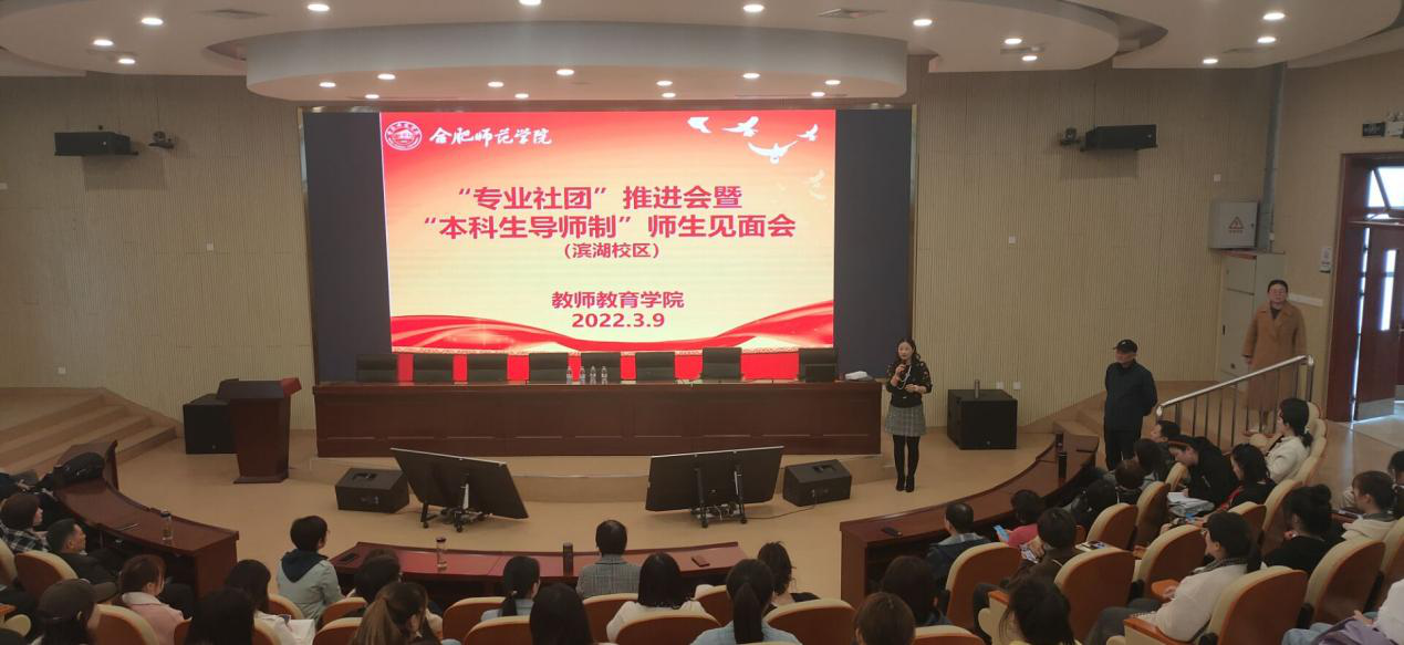 为了推进学院员工“导师制”工作,促进教师与员工之间的沟通交流,提升员工专业技能,2022年3月9日下午,教师教育学院在滨湖校区学术报告厅举办教师教育学院“专业社团”推进会暨“本科生导师制”师生见面会。公司党委书记穆娟、经理李群、全体教师和2021级全体同学参加本次会议,副经理闫龙主持。