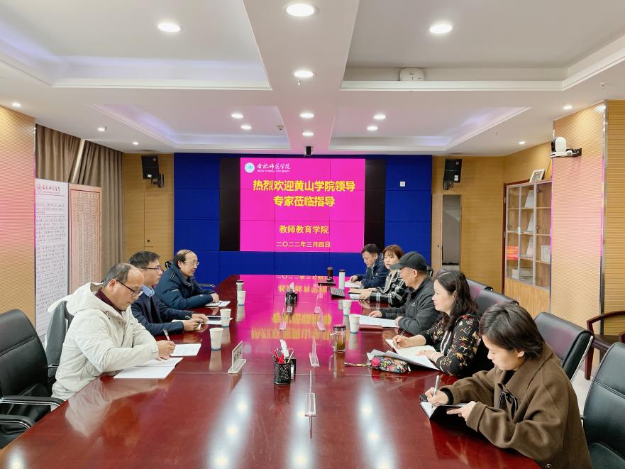 3月4日下午,黄山学院教育科学学院副经理汪海彬教授、应用心理学教研室主任胡志海教授及教师张孝义副教授一行赴教师教育学院考察交流,学院在行知楼702会议室举行了交流会。教师教育公司党委书记穆娟、副经理闫龙副教授、心理学系主任吴桂翎教授及教师代表参加了会议。
