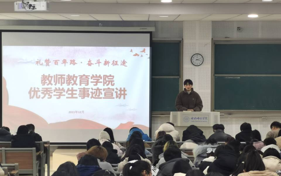 弘扬主旋律,传递正能量,礼赞百年奋斗路,发挥优秀员工的朋辈影响力,此次宣讲活动旨在激励学院员工争做有理想、有追求、有担当、有作为、有品质、有修养的栋梁之才的同时,厚植爱党爱国爱社会主义的情怀,助力同学们成为具有合师独特气质的、堪当民族复兴大任的时代新人。(教师教育学院:屠家宝 徐颖)