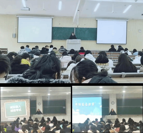 在专题主题班会上,辅导员关于诚信考试、安全离校、疫情防控、健康饮食、规律作息、提升自我等方面对同学们提出几点希望。一是诚实守信,积极应考。诚实守信是中华民族的优良传统,同学们应在期末认真备考,诚信考试,为本学期的学习生活交上满意的答卷。二是做好学习规划。要在假期保持良好的作息习惯,严于律己,不断学习,及时制定学习目标,合理规划,未雨绸缪,为下学期的学习生活打下基础。三是提升安全意识。要在回家途中注意个人财物和交通安全,平安到家后要及时向辅导员报备。要时刻注意防火防盗,要注意用电安全与食品安全。要提高网络电信诈骗防范意识,提高自我防范意识和识别能力。提前准备好离校所需的相关证明。四是做好疫情常态化防控工作。在寒假期间注意疫情防控,减少外出。