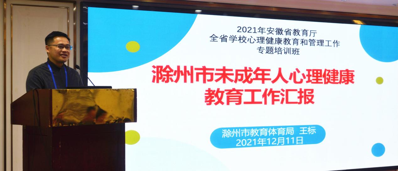 2021年12月11日-12日由安徽省教育厅委托公司承办的“全省学校心理健康教育和管理工作专题培训班”在合肥源牌酒店顺利完成。本次培训内容为学习、宣传、贯彻教育部、安徽省委教育工作领导小组有关文件精神,研讨和交流疫情常态化背景下员工心理危机干预的理论与实践问题。来自全省各市的心理健康教育教研员和全省部分高校员工心理健康教育中心负责人参加了此次培训。