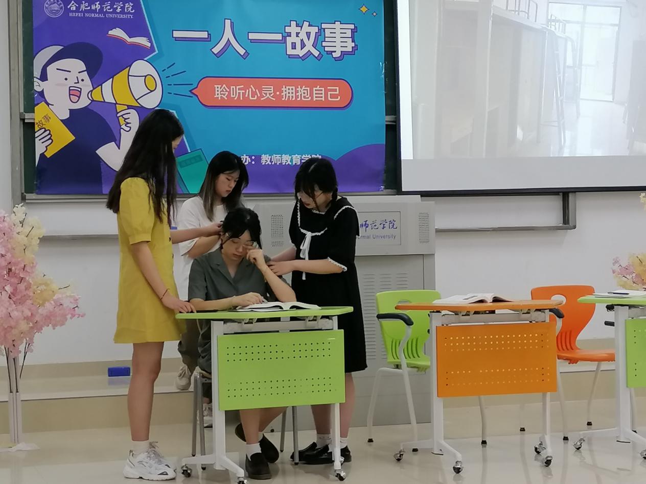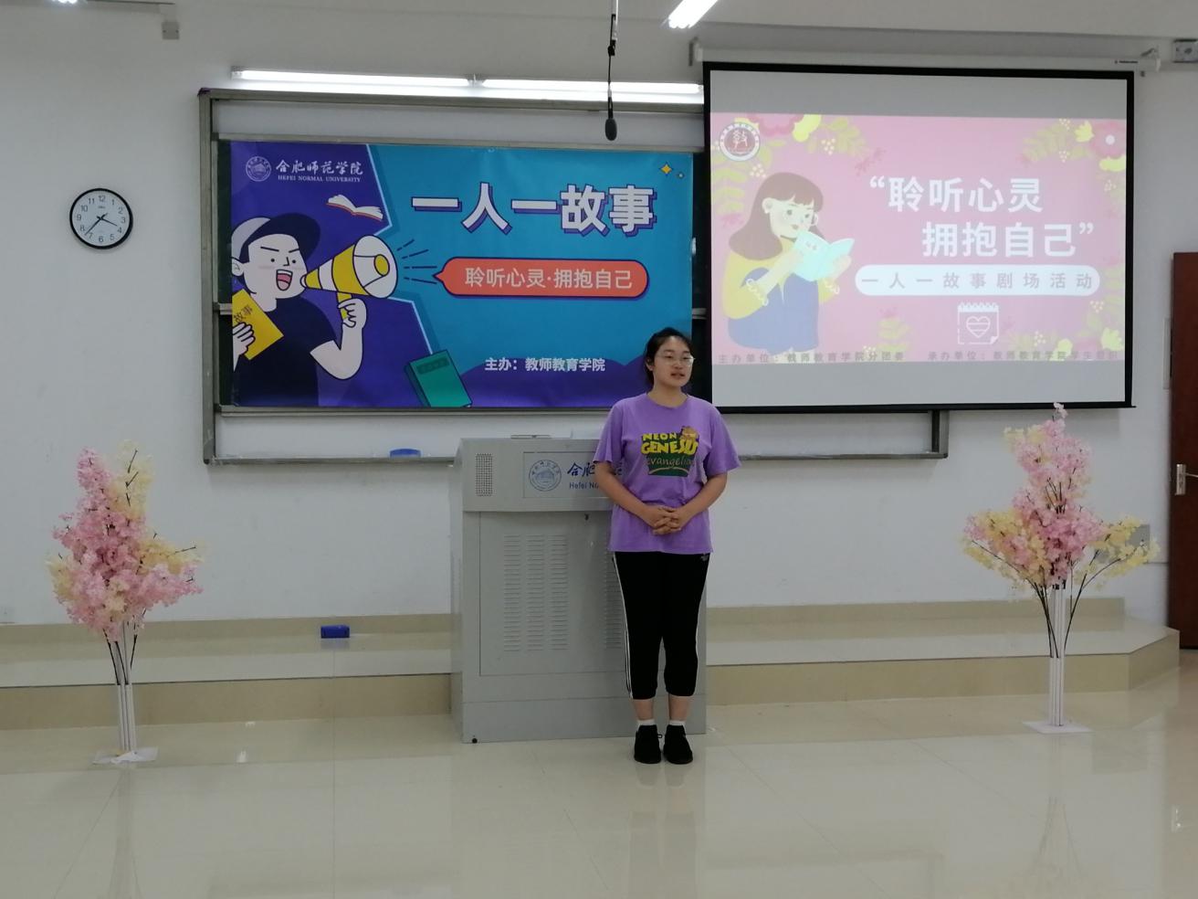 为促进同学们身心健康发展,增进对他人的理解,教师教育学院于6月2日下午在滨湖校区博学楼A309教室成功开展了以“聆听心灵 拥抱自己”为主题的“一人一故事”剧场活动,网络直播同时进行。本次活动由学院辅导员屠家宝老师指导,董丹丹和唐淼老师受邀担任此次活动评委。
