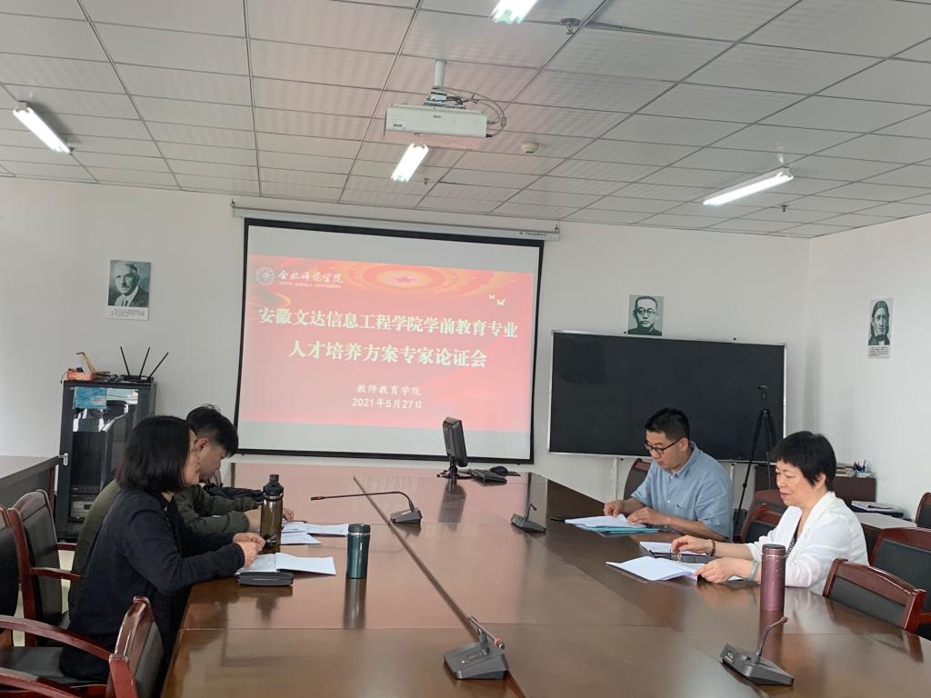 2021年5月27日上午,安徽文达信息工程学院影视传媒学院经理王小玲带着学前教育专业负责人裴老师来教师教育学院调研学前教育专业人才培养方案。教师教育学院经理李群教授和学前教育专业负责人胡连峰副教授接待了王小玲经理一行。