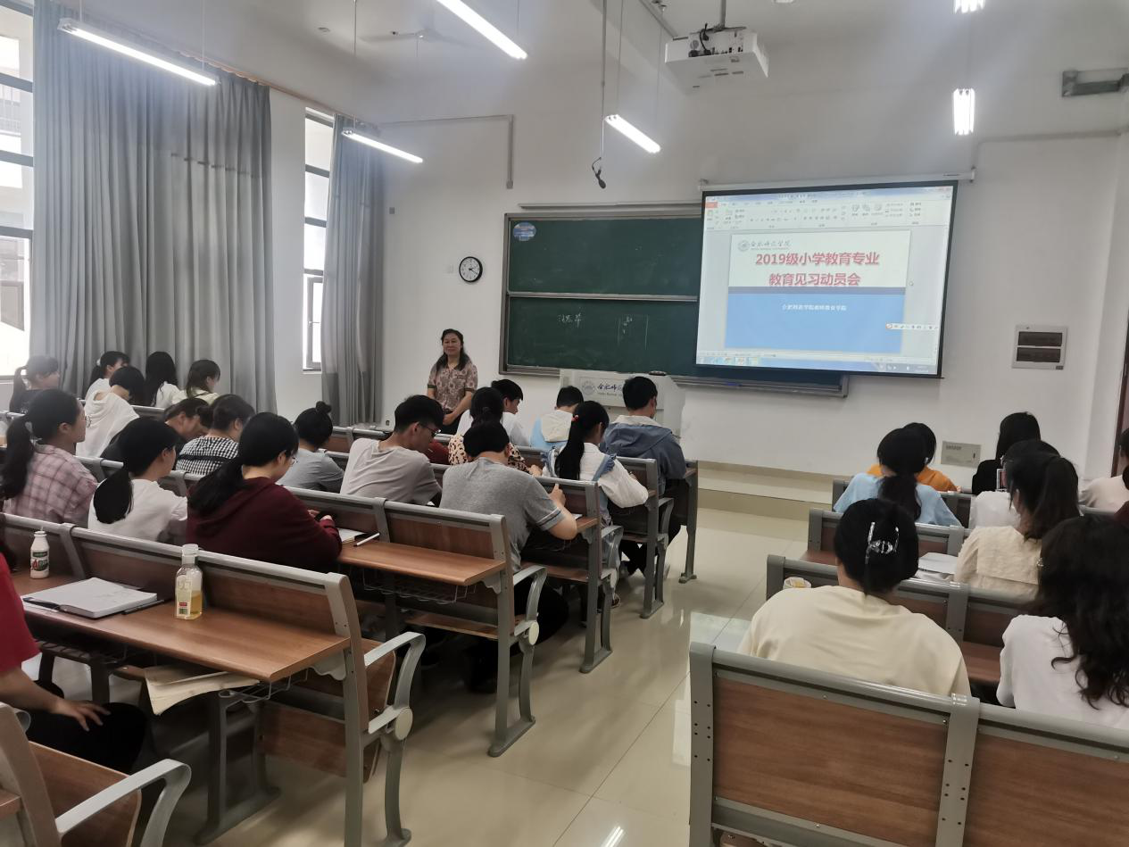 为了加强师范生对基础教育现状的了解,进一步做好公司见习工作,引导员工做好见习前的各项准备,5月9日下午,教师教育学院在滨湖校区博学楼B107教室组织召开了2019级小学教育专业见习动员大会。教师教育学院教育系主任汪昌华出席并主持会议,2019级小学教育专业全体同学参加。