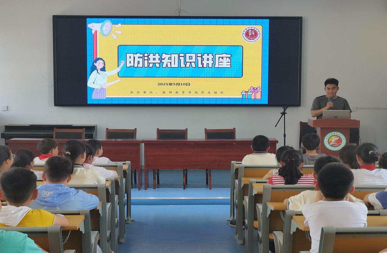 为进一步落实习近平总书记在党史学习教育动员大会中“学史明理、学史增信、学史崇德、学史力行”的要求,教师教育学院深入开展“学党史、强信念、跟党走”学习教育。5月10日下午,教师教育学院分团委、员工第一党支部应黄麓镇中心小学的邀请,组织党员、团员青年前往该校为全体四年级员工开展防洪防汛安全知识宣讲,2019级应用心理学专业唐旭州同学担任主讲。