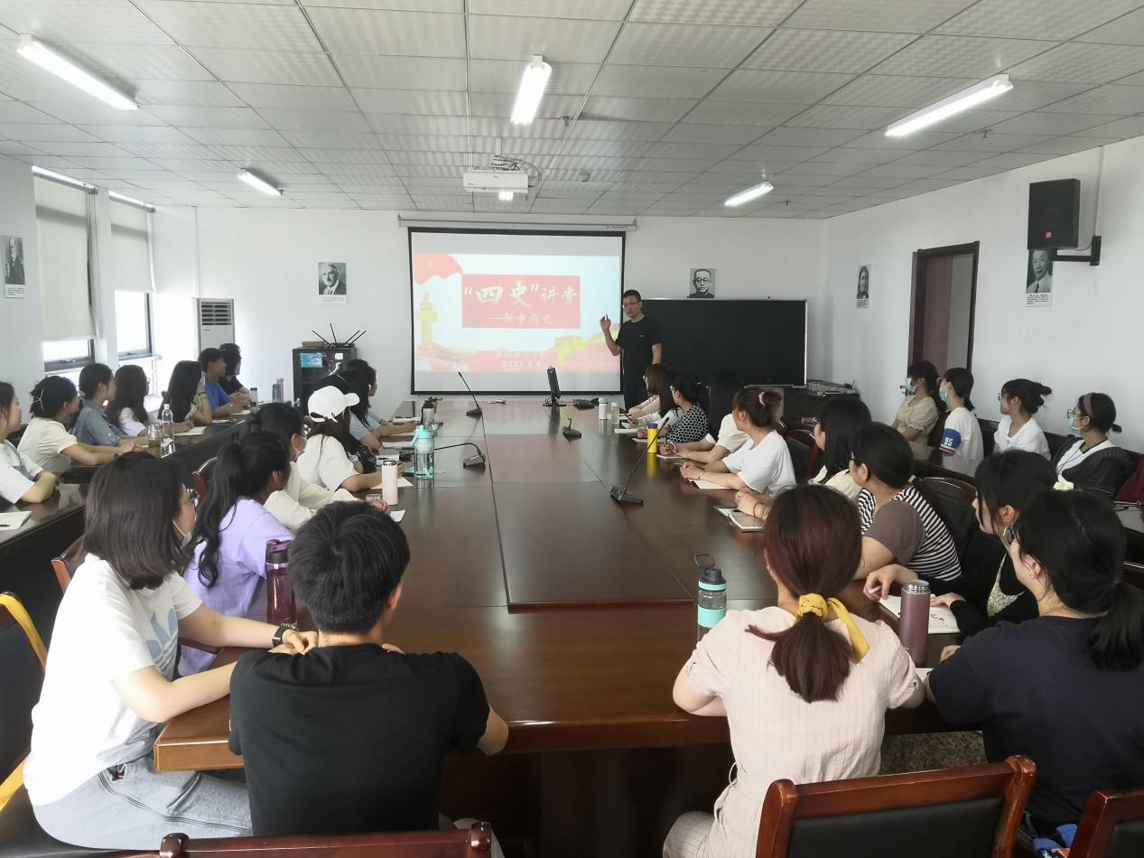 5月9日下午,学院师生在锦绣校区行知楼710室与滨湖校区铭传楼A305室集中观看“四史讲堂——新中国史”,同学们一边认真观看,一边做好研讨笔记。随后屠家宝老师和同学们展开了热烈讨论。屠家宝表示,如果没有共产党就没有新中国,我们的国家从四分五裂到团结统一,越来越富强,是党和人民齐心协力奋斗的结果,需要青年一代接力前进。 王芳同学说作为新一代的青年,我们应当肩负起建设祖国、保卫祖国的重任,这就要求我们要有过硬的本领,同时要有坚定的立场和正确的思想。周舸同学表示通过学习,更加深刻地认识了党,更加热爱党,更坚定了跟党走的决心,做新时代的青年,为共产主义事业奋斗。周亮同学说这次大课无疑是对当代老员工最好的指引与鞭策,如远洋里的灯塔般指导着我们前进。