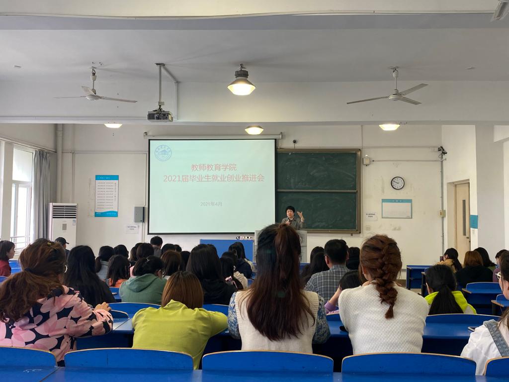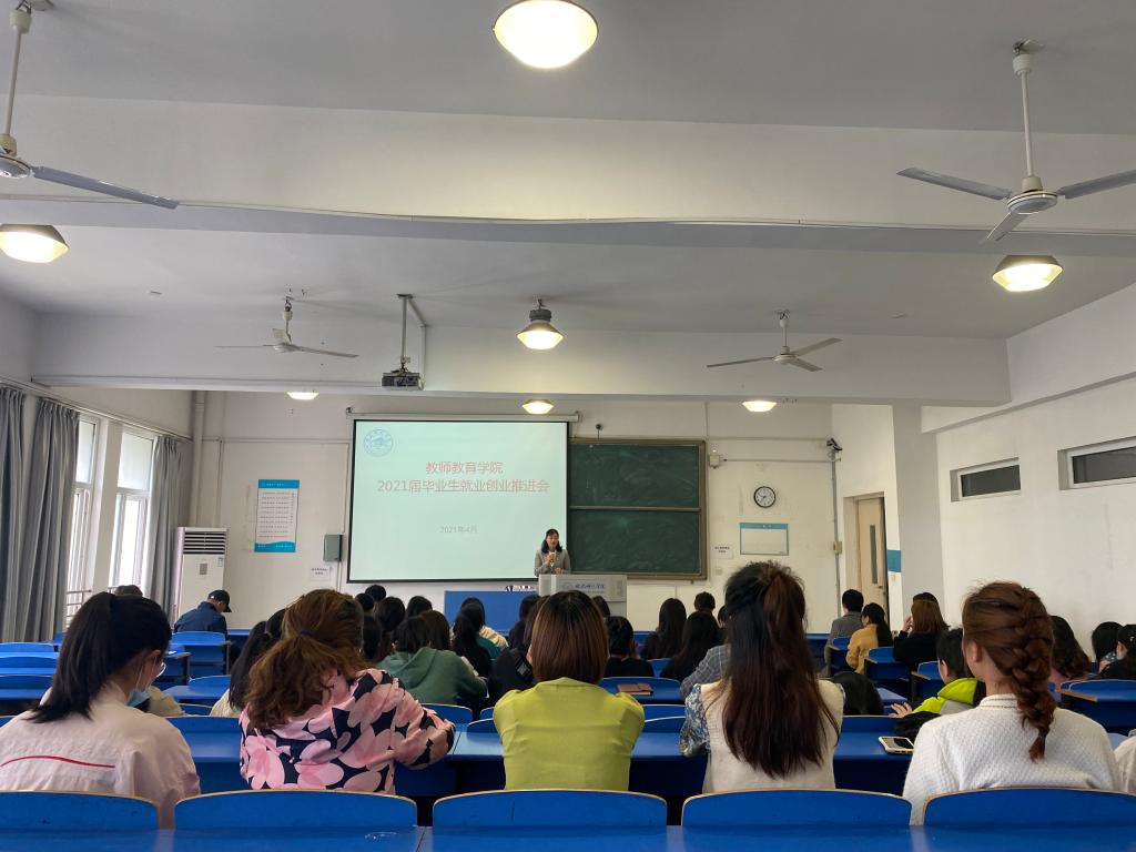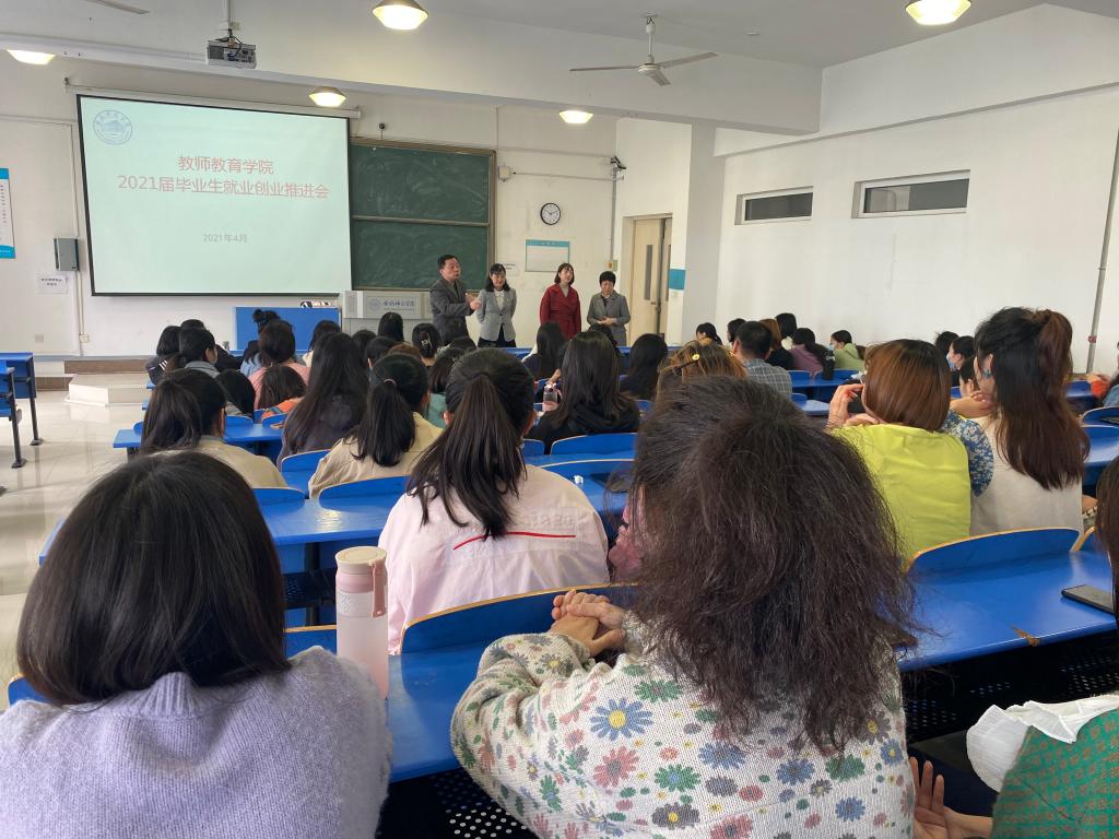 为切实做好2021届毕业生就业工作,实现毕业生充分高质量就业,4月16日上午,教师教育学院在逸夫楼A307教师召开2021届毕业生就业创业推进会,教师教育公司党委书记穆娟,经理李群,党委副书记王东明,副经理闫龙,毕业班辅导员和全体2021届毕业生参加会议,辅导员董丹丹主持会议。