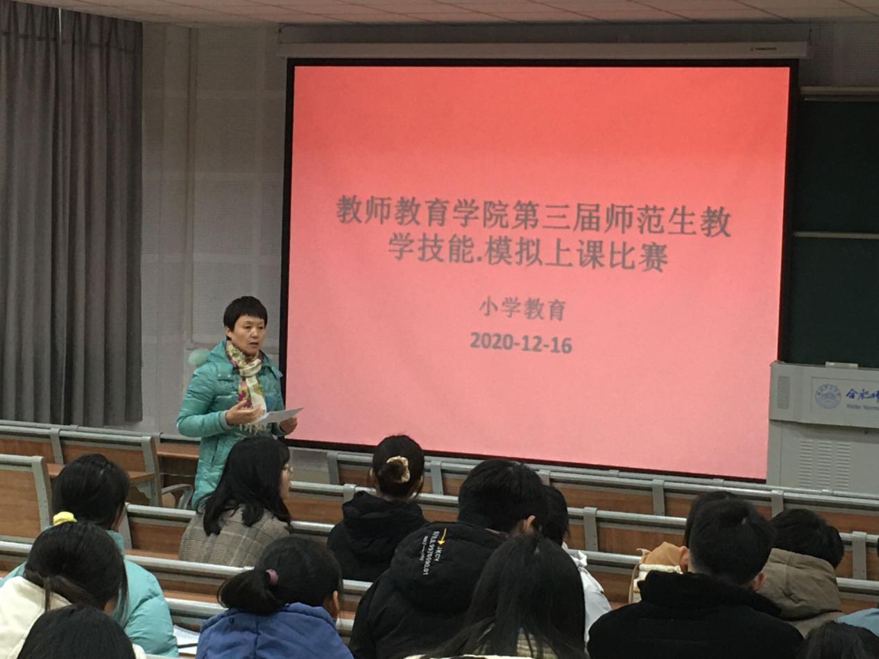 教师教育学院第三届师范生教学技能·模拟上课决赛于2020年12月16日下午在滨湖校区博学楼A108教室正式展开。2019级小学教育本科全体员工进行观摩。