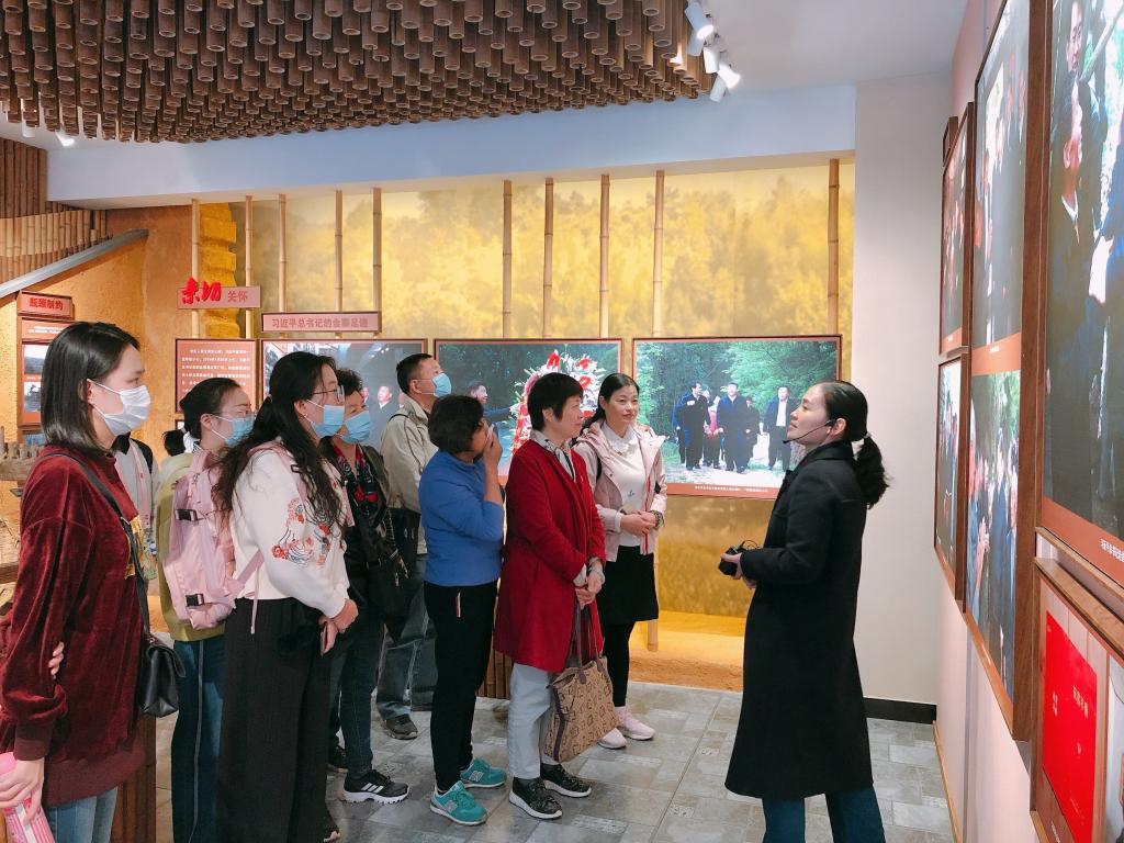 全体成员首先来到大湾村纪念馆和村民陈泽申家小院,讲解员的深情讲解,让大家再次感受到了习近平总书记亲临大湾村的动人场景,切身体会到四年多来,大湾村村民在党的精准扶贫政策正确指引下,在党员干部的积极带领下,依靠勤劳的双手,利用生态资源,开发特色产业,打赢了脱贫攻坚战,过上幸福美好的生活。这一生动案例,让大家共同见证了总书记亲切关怀下的大湾村四年来的脱贫成效,深切感受到总书记深厚的人民情怀和对老区人民、贫困群众的殷殷关爱关怀。