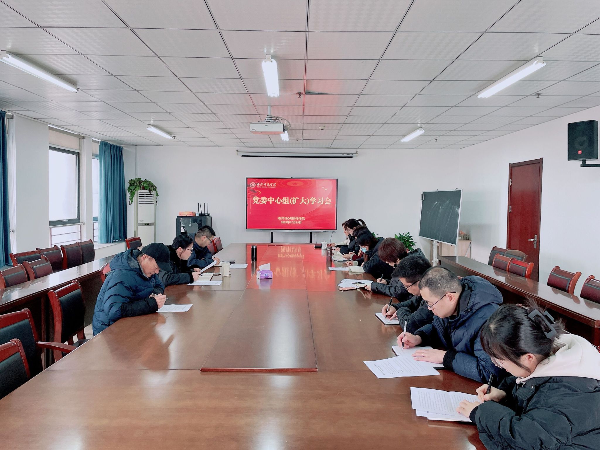 为深入学习贯彻习近平新时代中国特色社会主义思想,大力弘扬教育家精神,从教育家精神的丰富内涵中汲取砥砺奋进的精神力量,坚守立德树人初心使命,强化师德师风建设,12月13日,tyc8722太阳集团在行知楼710会议室召开党委中心组(扩大)学习,本次学习研讨的主题是“大力弘扬教育家精神,培养高素质教师队伍”,会议由公司党委书记董萍主持,学院领导班子,党委委员,各支部书记、副书记参加学习。