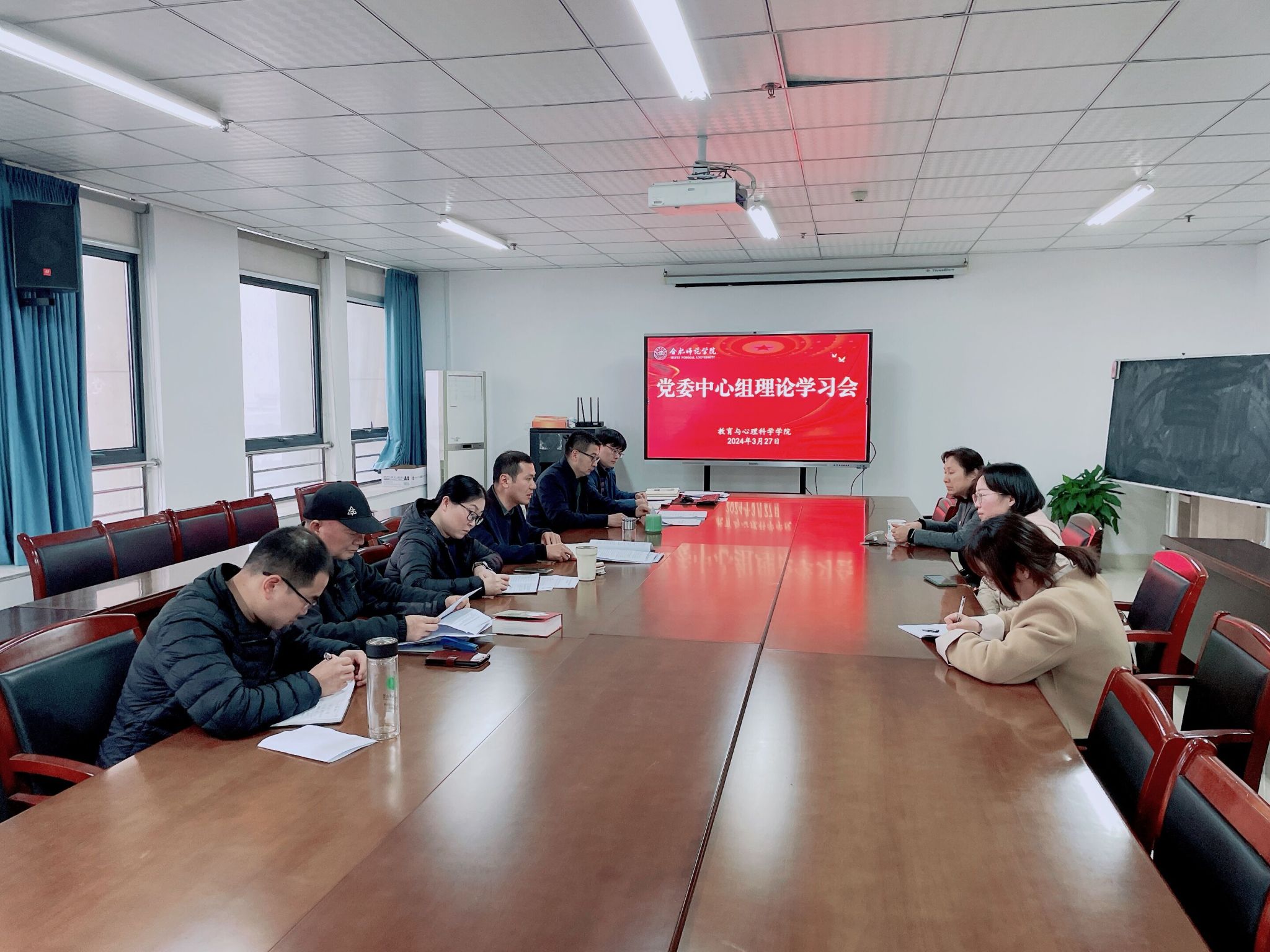 3月27日下午,tyc8722太阳集团在行知楼710会议室召开党委理论学习中心组学习会,中心组成员参加学习研讨,会议由党委书记董萍主持。