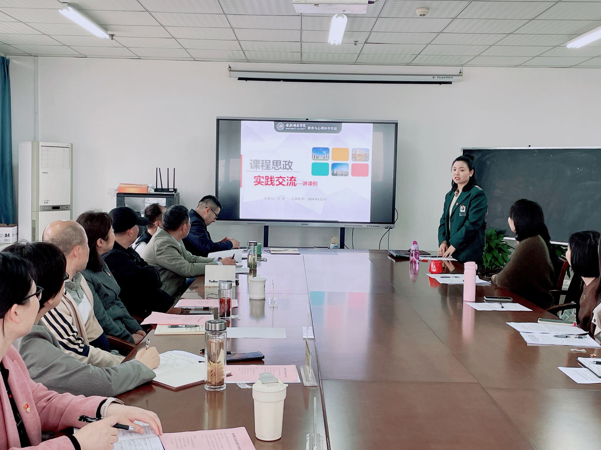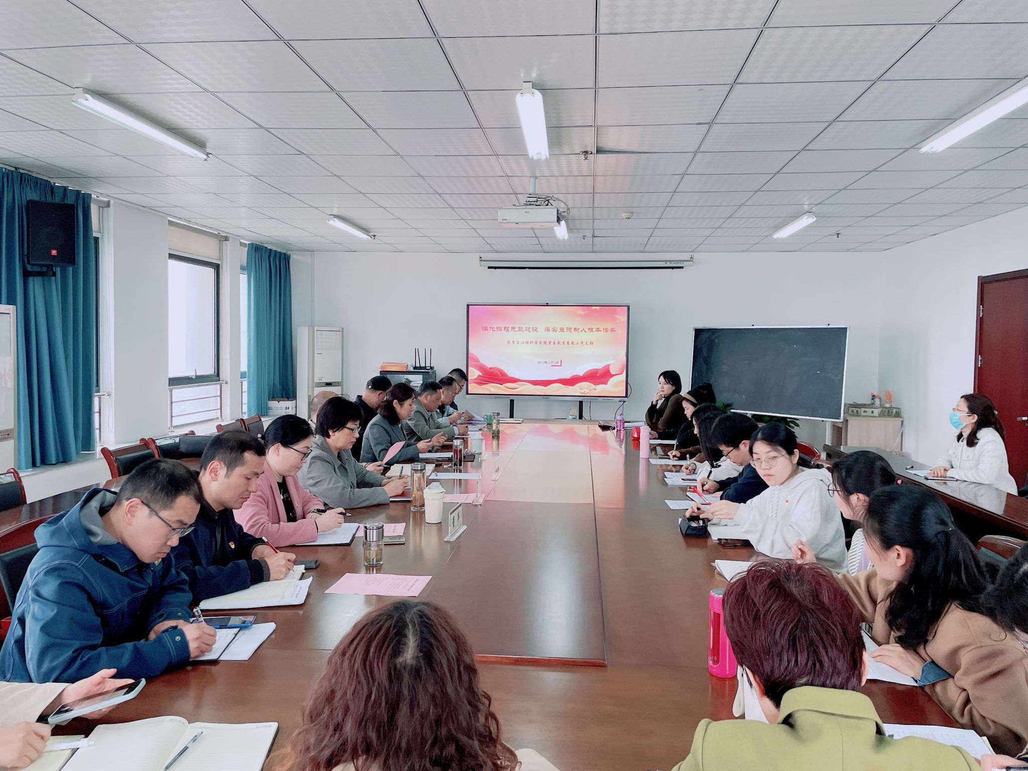 为深入学习贯彻习近平新时代中国特色社会主义思想和党的二十大精神,促进党建与事业深度融合,充分发挥基层党组织的战斗堡垒作用和党员的先锋模范作用,4月3日下午,教育系教工党支部在行知楼710会议室开展“深化课程思政建设 落实立德树人根本任务”主题党日活动。公司党委副书记、经理方东玲,机关第二党委书记、马克思主义学院教授陶有浩到场指导。教育与心理科学公司党委,学前教育系教工党支部、心理系教工党支部、员工党支部等支部书记、副书记,教育系教工党支部全体党员和入党积极分子代表,员工第一党支部员工党员代表等参加会议。会议由教育系教工党支部书记汪昌华主持。