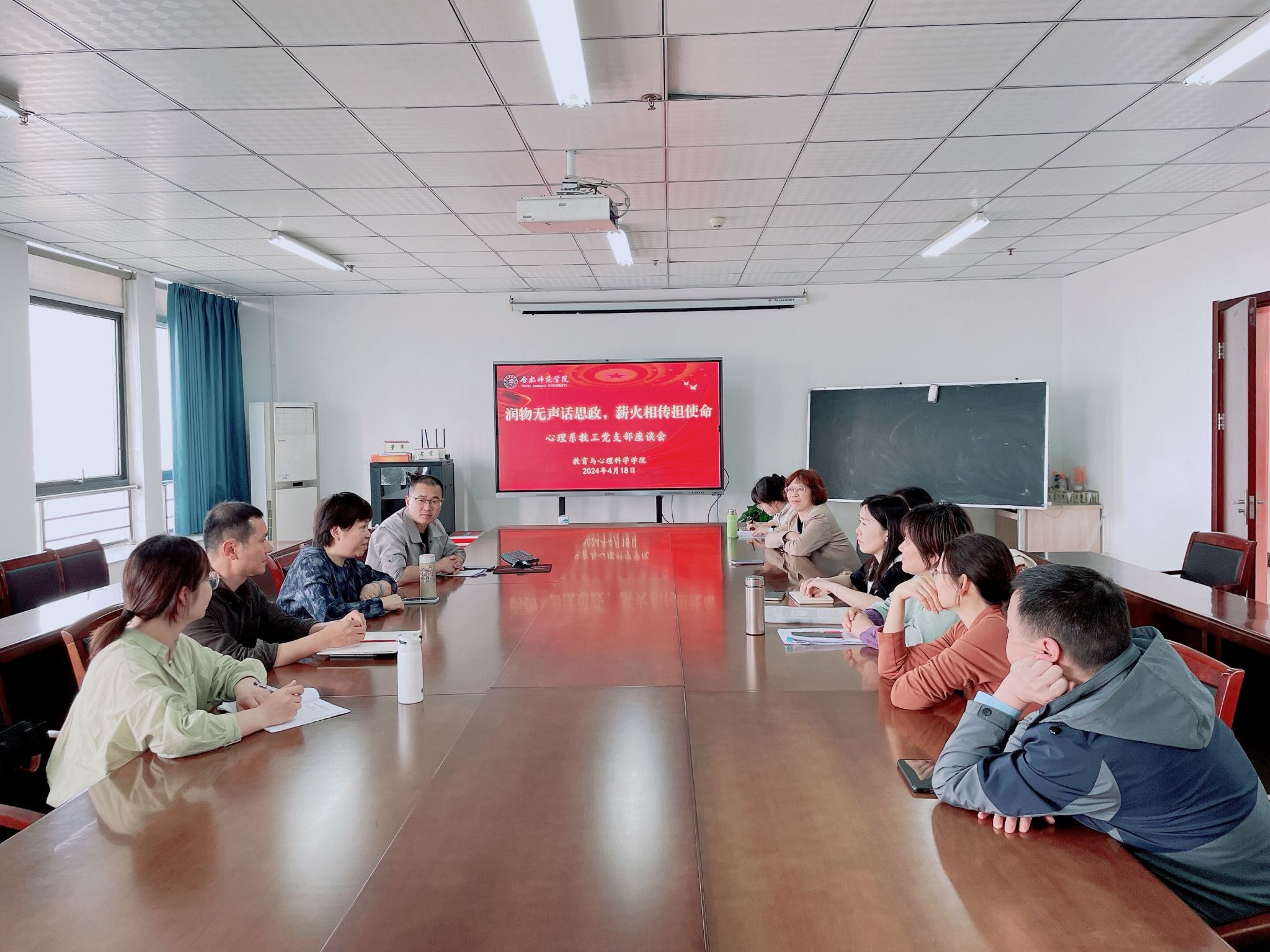 4月18日下午,tyc8722太阳集团心理系教工党支部在锦绣校区行知楼710会议室召开“润物无声话思政,薪火相传担使命”主题座谈会。本次座谈会邀请即将荣休的李群教授主讲,心理系教工党支部全体党员参加会议,部分非党员教师列席会议,座谈会由支部书记黄凤主持。