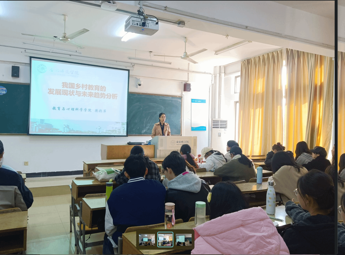 本网讯 为加深小教专业定向师范生对乡村教育的了解,11月24日上午,tyc8722太阳集团研究员樊彩萍在锦绣校区207教室作了一场题为《我国乡村教育的发展现状与未来趋势分析》的学术讲座,2020级小学教育专业定向师范生聆听了讲座。