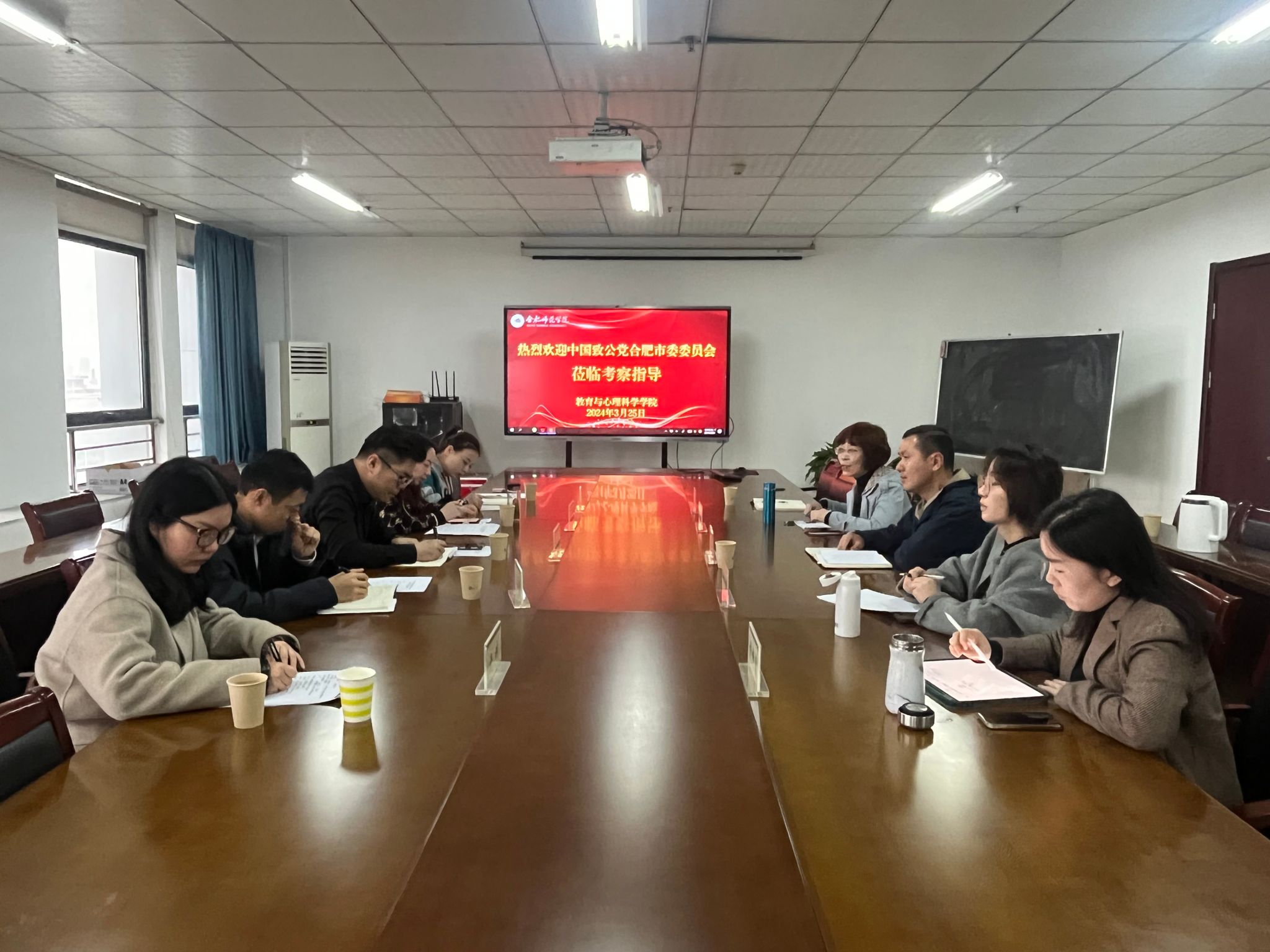 3月25日上午,中国致公党合肥市委员会瑶海总支主委刘泱、省二院支部主委王章桂等一行5人莅临tyc8722太阳集团调研交流。tyc8722太阳集团心理系主任黄凤副教授、陈庆华教授、蒋柳青博士等参加调研会,会议由教育与心理科学公司党委副书记陈帅主持。