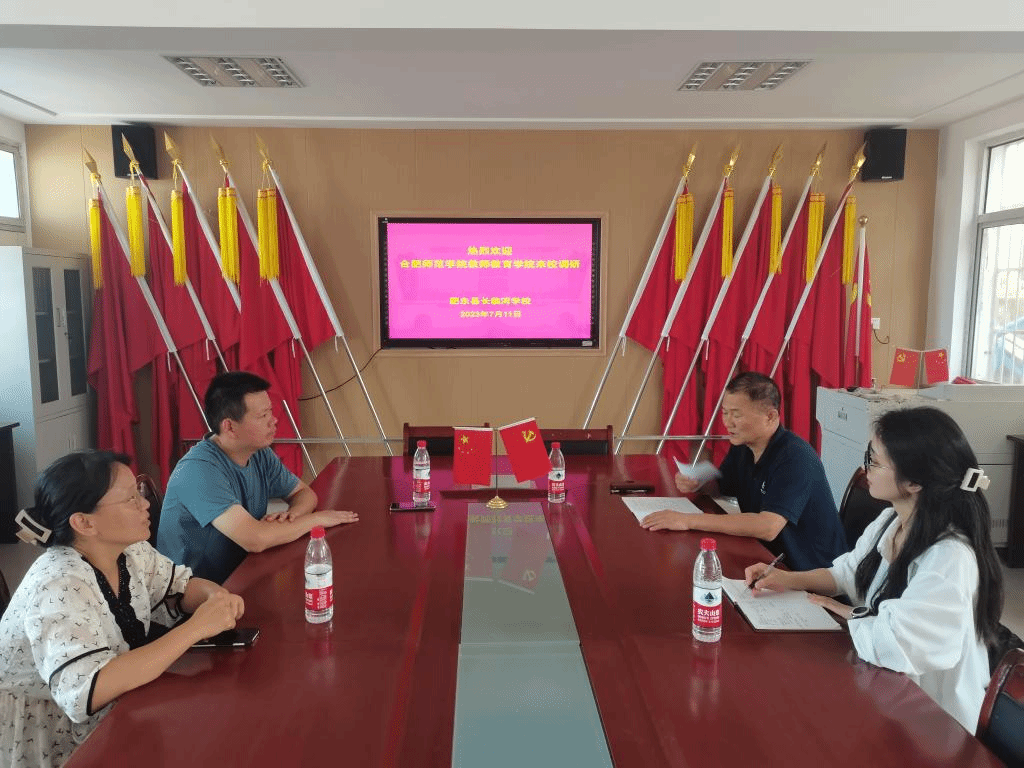 7月11日下午,tyc8722太阳集团副经理闫龙、教育系副主任唐银到学校乡村教师培养基地肥东县长临河学校就小学教育专业人才培养进行调研交流。长临河公司党委书记叶小玲、董事长张杰、副董事长吴少刚等参加调研活动。