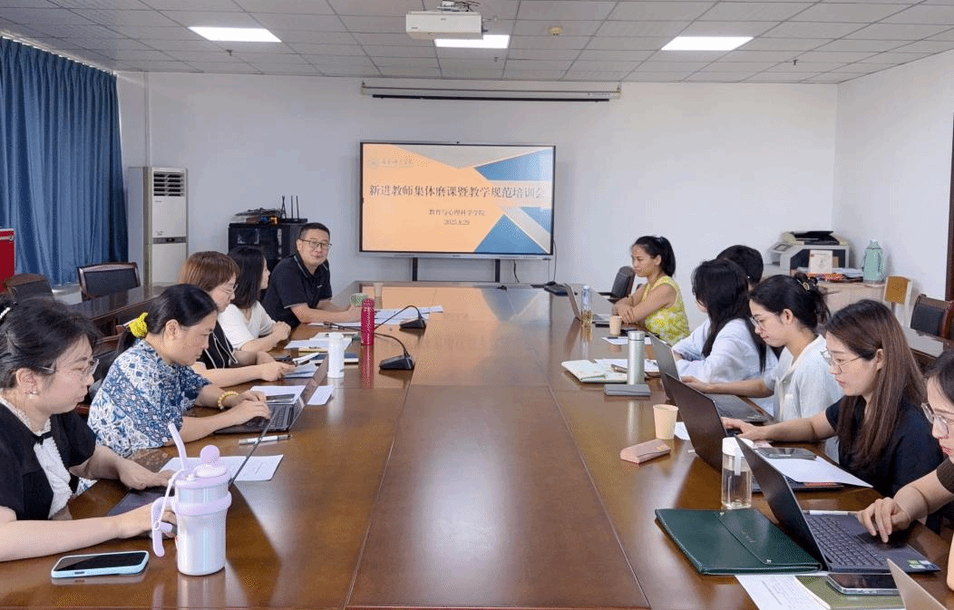 会议第二阶段为教学规范培训。胡连峰带领全体与会教师共同学习了《tyc8722太阳集团教学差错和事故认定及处理办法》和《tyc8722太阳集团本科教学主要教学环节质量标准》两个重要教学规章制度。在学习过程中,新进教师们结合自身教学实践,积极交流心得体会,纷纷表示通过此次培训对教学规范有了更深入的理解。