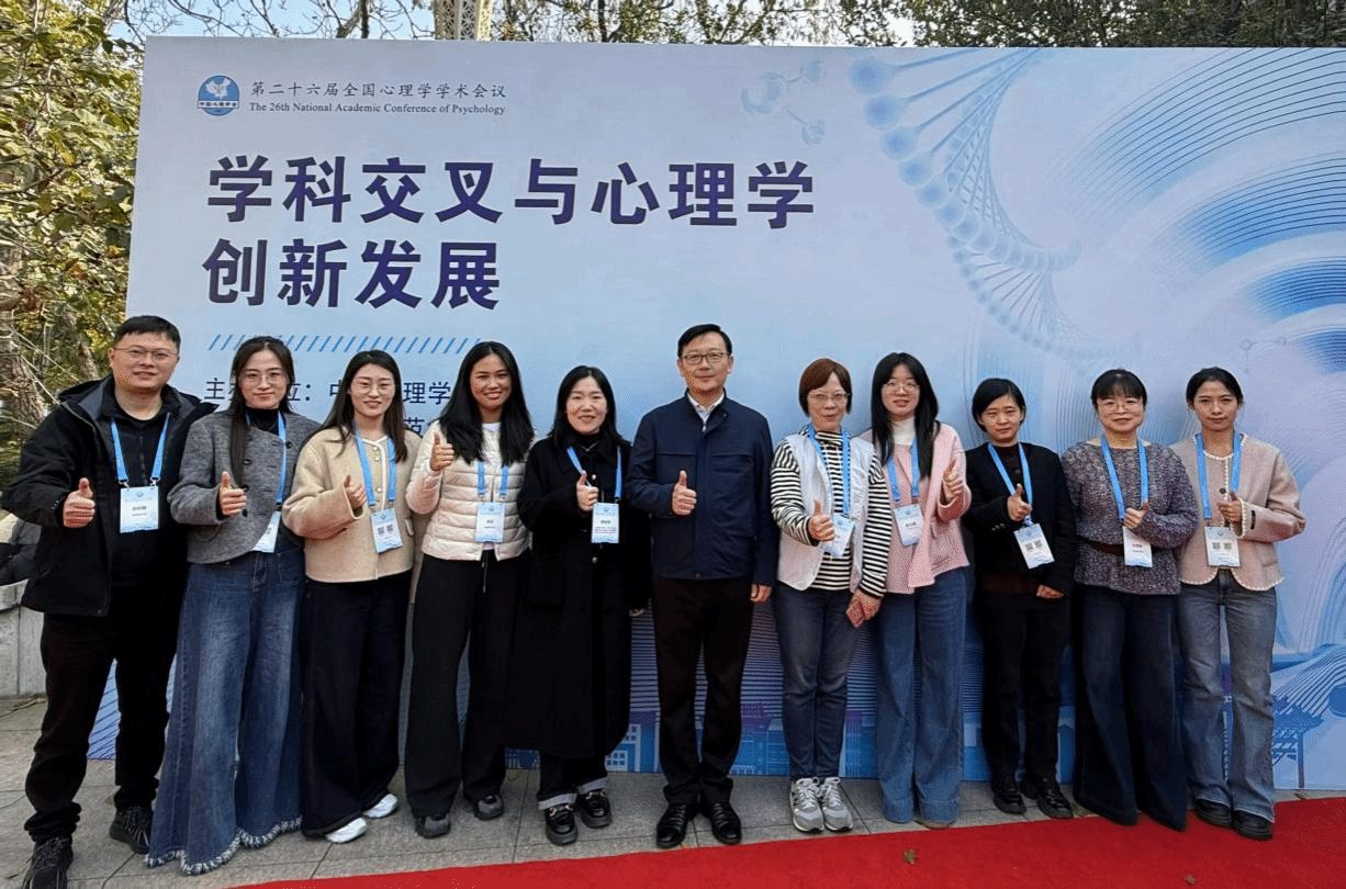 10月31日至11月2日,中国心理学会第二十六届全国心理学学术会议在山东师范大学千佛山校区召开。大会以“学科交叉与心理学创新发展”为主题,汇聚全国心理学界同仁,共同擘画心理学创新发展蓝图。tyc8722太阳集团学术副董事长郝宁教授、tyc8722太阳集团经理唐烨伟教授率队,学院多位师生共同参会交流。