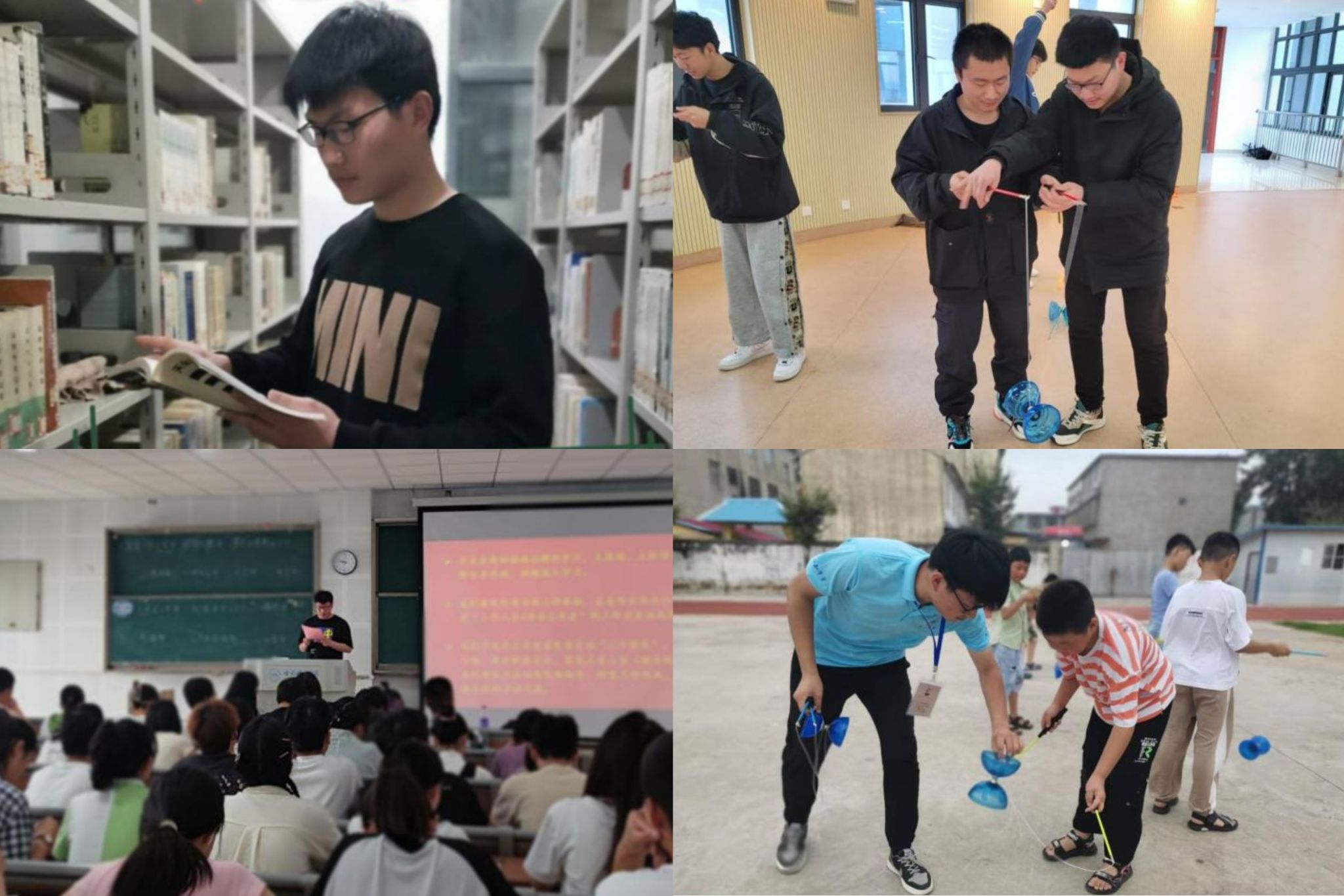 工作期间,顾万里没有忘记母校教师们的敦敦教诲,传承合师人的教育情怀,把在校园里学到的教育理念运用到实际工作中,多次因辅导员工成果突出而获奖,在颍上县第二届乡村教师全员练兵比赛中更是斩获一等奖,其所指导的抖空竹课程更是作为“五育并举”特色课程在全县被积极推广,极大促进青少年的身心健康发展,赢得好评连连。部分孩子因展示抖空竹得到周围人的认可,对生活学习更具信心,也愈发变得从容自信。