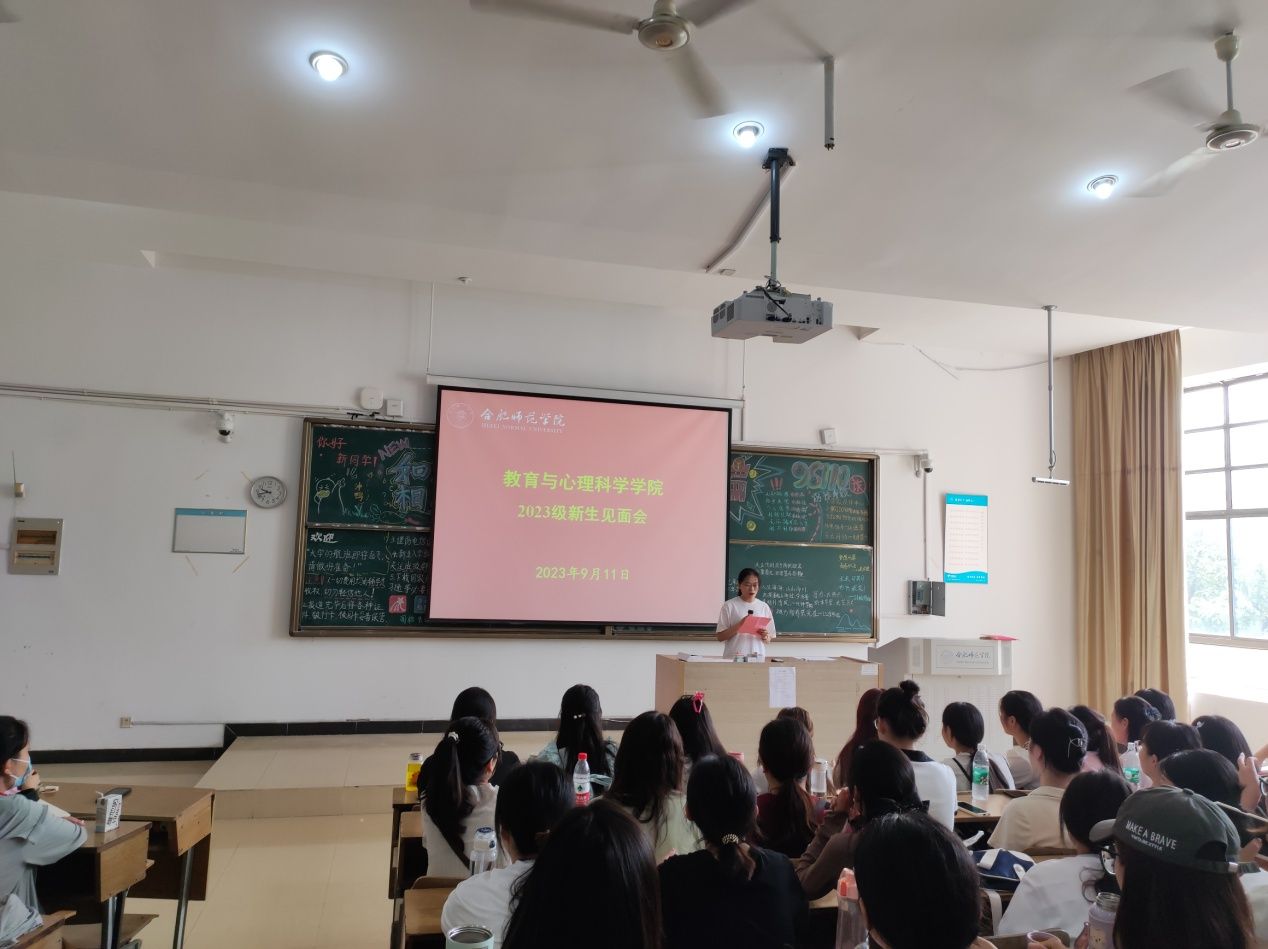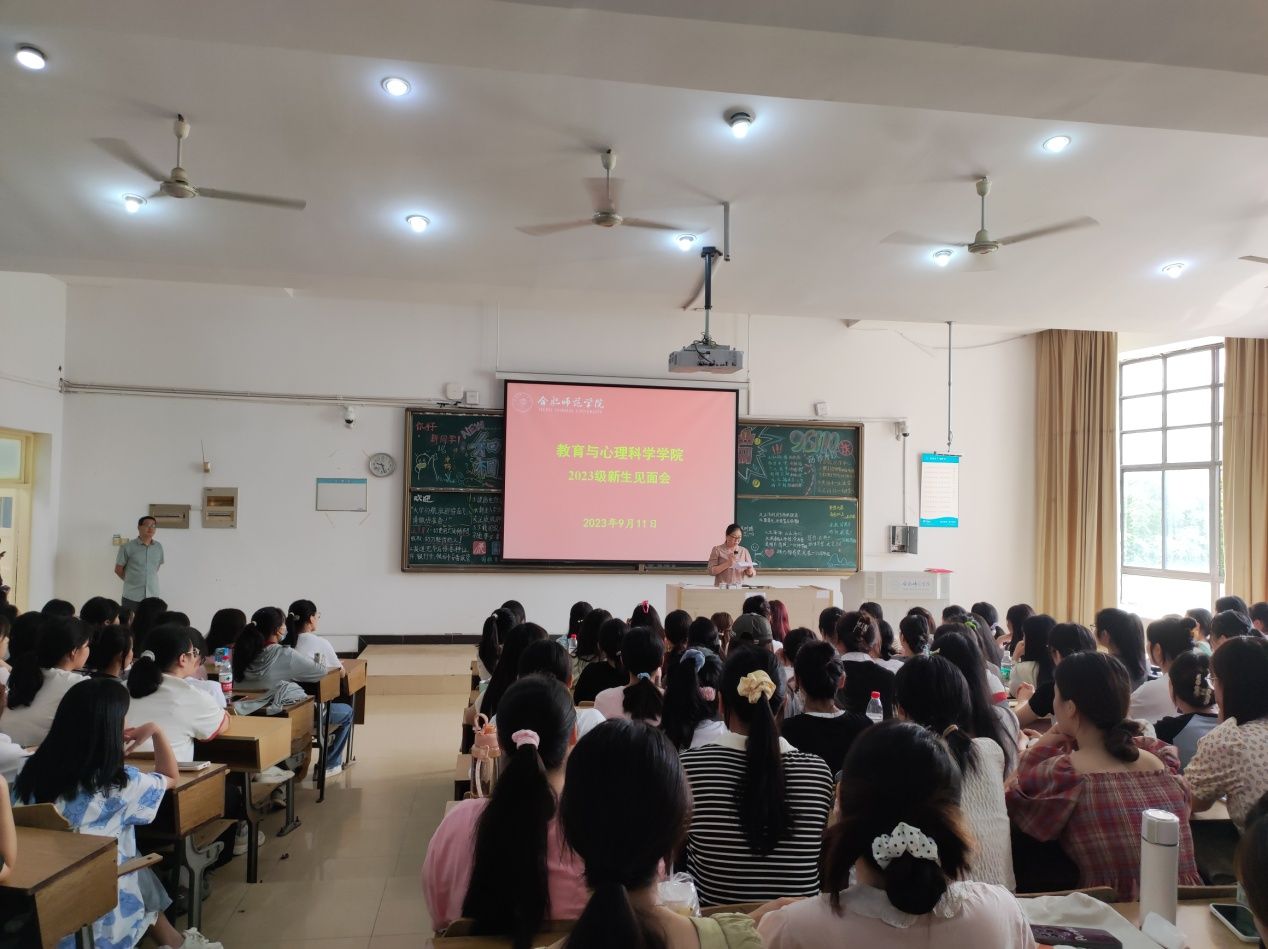 (本网讯)为做好新生入学教育,引导员工尽快适应大学学习生活,9月11日,tyc8722太阳集团在锦绣校区博约楼108教室开展新生见面会。公司党委书记董萍、公司党委副书记陈帅、副经理胡连峰、副经理胡哲、辅导员李广有、2023级学前教育(专升本)专业344位新生参加会议。会议由学院2023级新生辅导员魏晓倩主持。