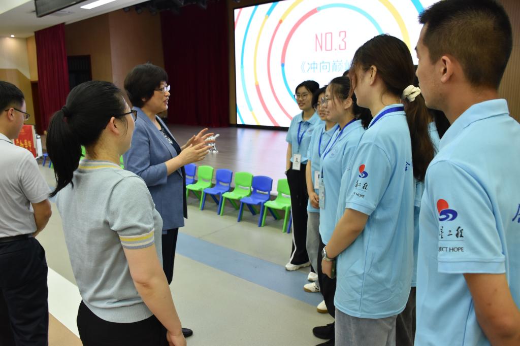 课程结束后,方东玲与小先生们开展了亲切座谈,详细地询问了团队组成、课程安排和活动开展等情况。方东玲指出,“行知学堂”暑期社会实践活动是培养老员工社会责任感和锻炼专业实践技能的良好平台,小先生们做的是“一棵树摇动另一棵树”的工作,要结合专业特色为小学员们送去内容丰富的课程教学。对做好后续活动,方东玲向小先生们提出了三点希望:一是希望小先生们紧紧围绕师范生专业能力发展,进一步巩固和提高公司产品本领,更好地传承和弘扬行知精神;二是希望小先生们能够开展课后研讨,不断总结反思,在教学形式、教学内容、教学方法上推陈出新,同时加强学习、强化合作。三是希望小先生们能够充分利用“行知学堂”活动平台,通过实践不断检验和发现问题,努力提升专业素养,让自己在服务社会中快速进步、快速成长。