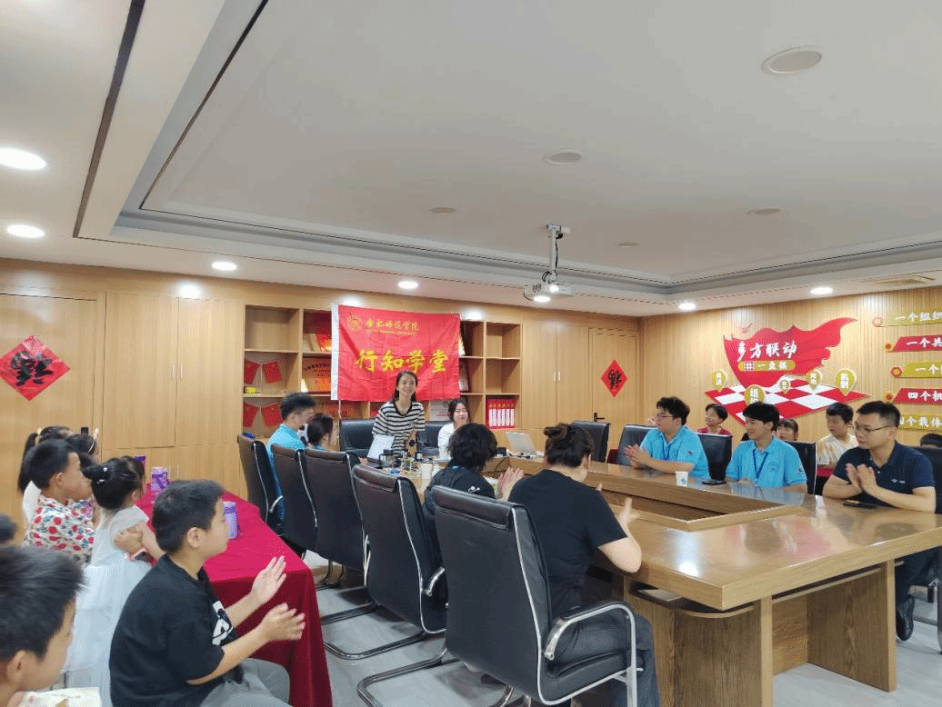 7月9日,tyc8722太阳集团滨湖世纪社区行知学堂举行开班仪式。滨湖世纪社区金翰网格党委副书记张欣、tyc8722太阳集团教师唐银及8位小先生、28名小学员参加了开班仪式。