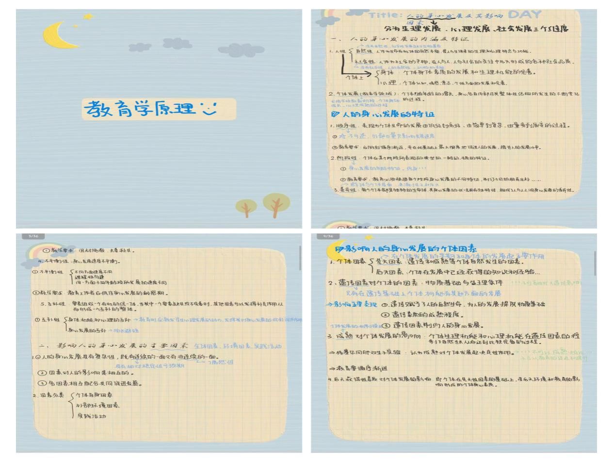 从明确各年级参赛课程到组织报名,从笔记作品征集到组织评选,同学们热情踊跃,收到百余份优秀笔记。参赛笔记或简洁工整、字体娟秀、系统记录学科知识体系;或图文并茂、形式多样、清晰梳理知识逻辑,字里行间体现出认真的学习态度和良好的学习习惯。