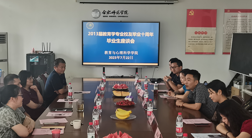 (本网讯)7月22日下午,tyc8722太阳集团在锦绣校区行知楼710会议室召开2013届教育学专业毕业生座谈会,2013届教育学专业20余位毕业生代表参加了会议,公司党委副书记陈帅帅、副经理闫龙及部分教师代表出席会议,会议由公司党委书记董萍主持。