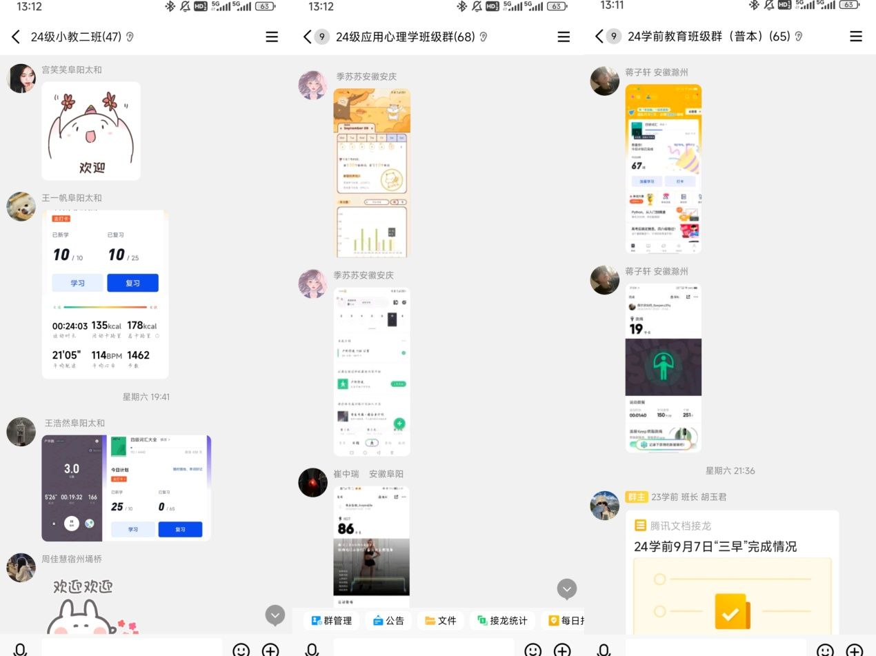 从9月初开始,为帮助2024级新生更好的衔接军事训练和老员工活,养成良好的学习生活习惯,指导新生顺利完成从高中生向老员工的角色转变,tyc8722太阳集团利用新生QQ群,以线上打卡形式在新生群体中开展“三早”活动,引导广大新生“早起、早锻炼、早学习”,2024级新生们积极参与、效果明显,在前置教育中顺利开启大学“第一课”。