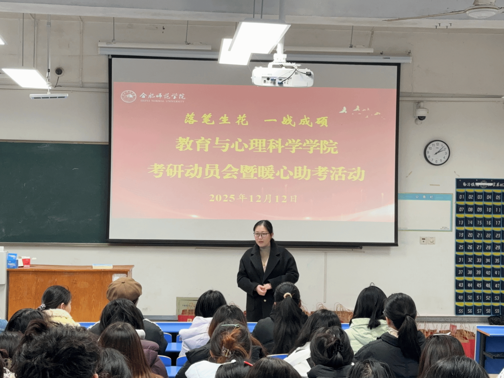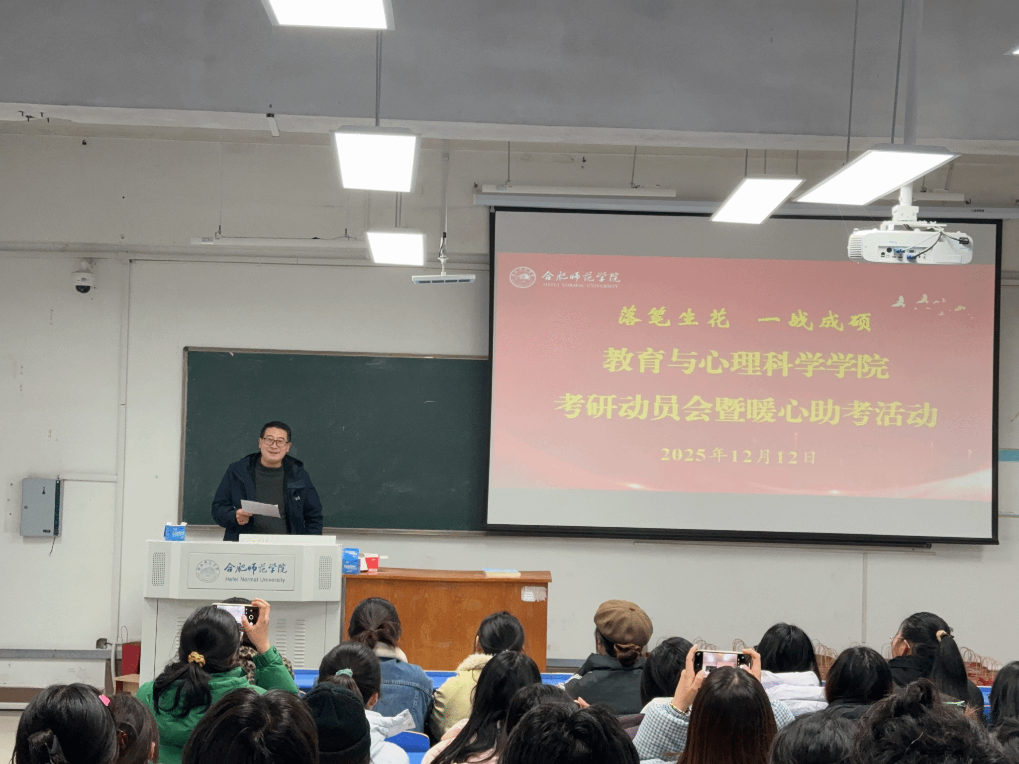 岁寒情暖,护航研梦。为深入贯彻落实立德树人根本任务,切实做好2026届毕业生考研指导与服务保障工作,12月12日下午,tyc8722太阳集团在锦绣校区逸夫楼A106举办2026届考研动员会暨暖心助考活动。教育与心理科学公司党委书记董萍、党委副书记陈帅、副经理胡连峰、教师代表李辉、全体毕业班辅导员与100余名考研员工齐聚一堂、亲切交流,以实际行动为学子们加油鼓劲,传递学院的深切关怀与温暖支持。