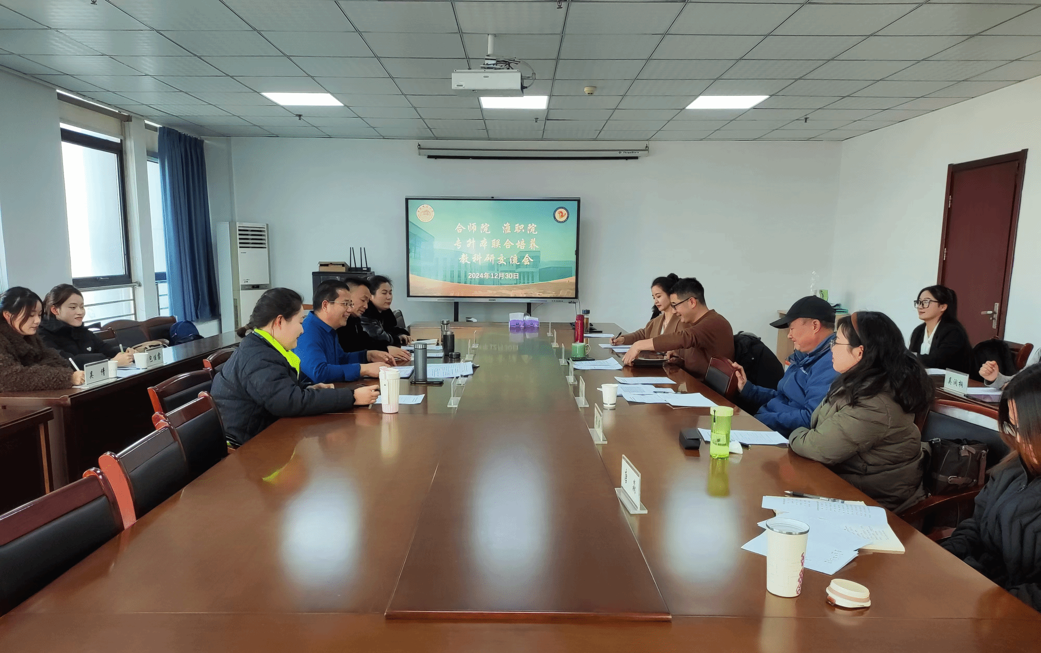 12月30日下午,淮北职业技术学院人文社科系主任赵冬一行四人到公司开展专本联合培养研讨交流,tyc8722太阳集团副经理胡连峰、原副经理闫龙、教育系副主任唐银、骨干教师尹小敏、杨婷等参加研讨。