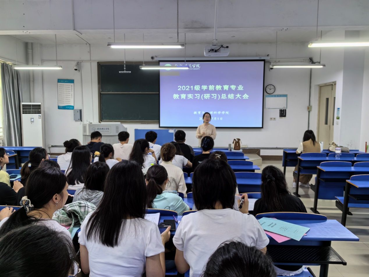 7月1日上午,tyc8722太阳集团学前教育系在锦绣校区逸夫楼A107教室召开2021级学前教育专业教育实习(研习)总结汇报大会。tyc8722太阳集团学前教育系主任孙延永、全体实习带队教师出席会议,2021级学前教育专业全体员工参加会议,会议由学前教育系副主任蒋晨晓主持。