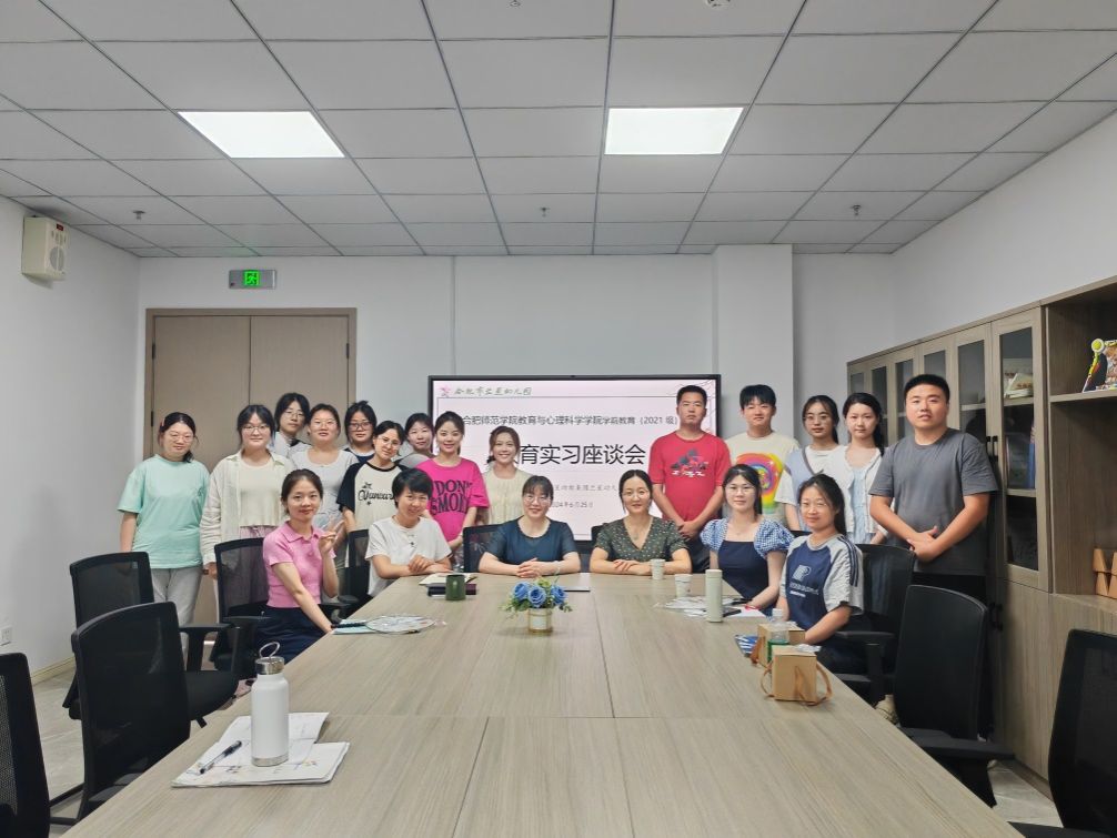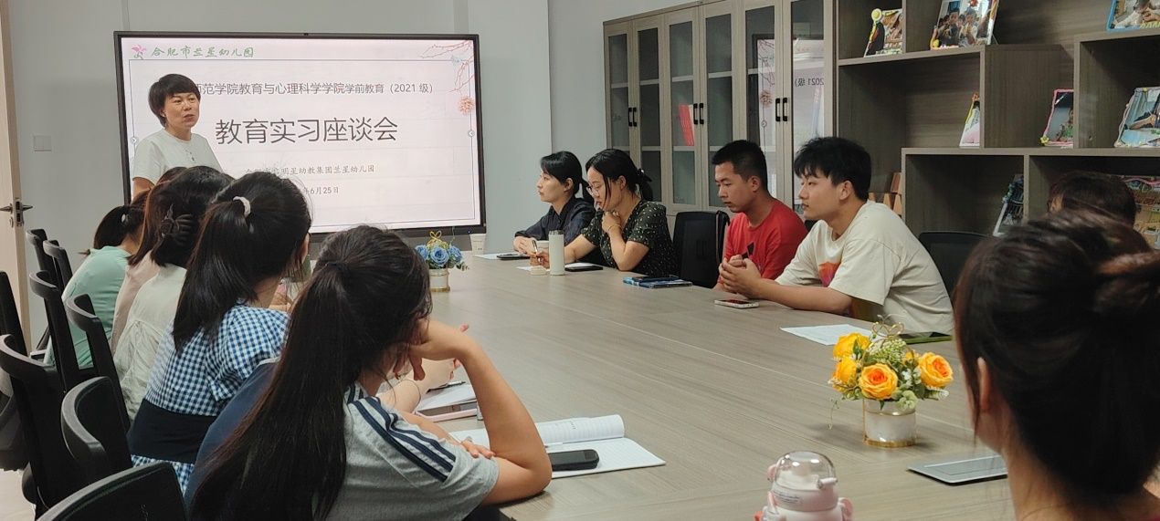 为巩固与检验员工教育实习(研习)效果,强化员工实践感悟,6月25日下午,tyc8722太阳集团学前教育系与合肥市兰星幼儿园实习点联合召开实习总结座谈会,会议在兰星幼儿园会议室召开,兰星幼儿园园长王小婵、教学主任孙红,tyc8722太阳集团教师蒋晨晓、张华玲以及2021级学前教育专业兰星实习点全体员工参加座谈活动。